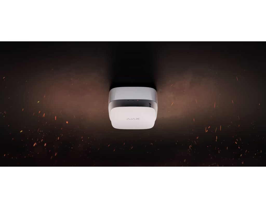 FireProtect 2 - устройство нового поколения для мгновенного обнаружения пожара. Уникальная дымовая камера не требует регулярной чистки, двухспектральный сенсор отличает дым от пара, термистор быстро реагирует на горение синтетических материалов, а умные программные алгоритмы сводят к минимуму вероятность ложных тревог. Все это соответствует современным стандартам пожарной безопасности. Благодаря продуманному дизайну, монтажу и настройке в приложении датчик устанавливается просто и быстро. Обнаружение дыма FireProtect 2 обнаруживает дым и не реагирует на водяной пар благодаря биспектральному оптическому сенсору с синим и инфракрасным светодиодами. Светодиоды излучают свет с разной длиной волны, что позволяет датчику определить размер летучих частиц и реагировать только на дым. Дымовая камера датчика защищена от пыли, грязи и насекомых. Даже если пыль попадет и осядет в дымоходе - это не угрожает детектированию и не ухудшает его. Оптическая система спроектирована таким образом, что нелетучие частицы или насекомые не могут оказаться одновременно в двух лучах и спровоцировать ложную тревогу. Обнаружение стремительного повышения температуры За реакцию на повышение температуры отвечают два встроенных термистора. Термисторы находятся снаружи датчика для более быстрого обнаружения угроз. Если температура в помещении превышает 64°C или растет со скоростью от 10°C в минуту, датчик распознает это как стремительное повышение температуры и поднимает тревогу. Тревога по температуре может сработать, даже если в помещении нет дыма. Синхронная тревога пожарных датчиков Датчик поддерживает синхронные пожарные тревоги. Функция активирует встроенные сирены всех пожарных датчиков Ajax в системе при срабатывании хотя бы одного из них. В случае пожара это позволяет оповестить как можно больше людей на объекте. Датчики FireProtect 2 имеют усовершенствованный алгоритм работы синхронной тревоги, который активирует сирены всех пожарных датчиков за 20 секунд. Функция работает только при работе датчиков с хабом. Работа без хаба Датчики FireProtect 2 можно использовать без подключения к хабу Ajax. В этом случае датчик сообщает о пожарных тревогах встроенной сиреной и светодиодной индикацией, но не отправляет уведомления на смартфон пользователя, Ajax Translator или PRO Desktop. Ручное и автоматическое тестирование FireProtect 2 регулярно проверяет состояние батарей и сенсоров. Если неисправность обнаружится, хаб мгновенно отправит уведомление пользователям и пульту мониторинга. А сам датчик включит соответствующее светозвуковое оповещение встроенной сиреной и светодиодами. Все состояния датчика в любой момент можно проверить в программах Ajax. Датчик поддерживает режим тестирования. Режим активируется при нажатии на переднюю панель датчика. Фронтальная панель оснащена механической кнопкой, поэтому ее можно нажать как рукой, так и шваброй. Во время теста запускается встроенная сирена и тестирование сенсоров. Это позволяет инженеру монтажа протестировать устройство в любой момент, а также продемонстрировать клиенту светозвуковую индикацию датчика при различных типах тревог. Jeweller технология связи Jeweller - это радиопротокол для быстрой и надежной двусторонней связи между хабом и подключенными устройствами. Протокол обеспечивает дальность беспроводной связи с FireProtect 2 д