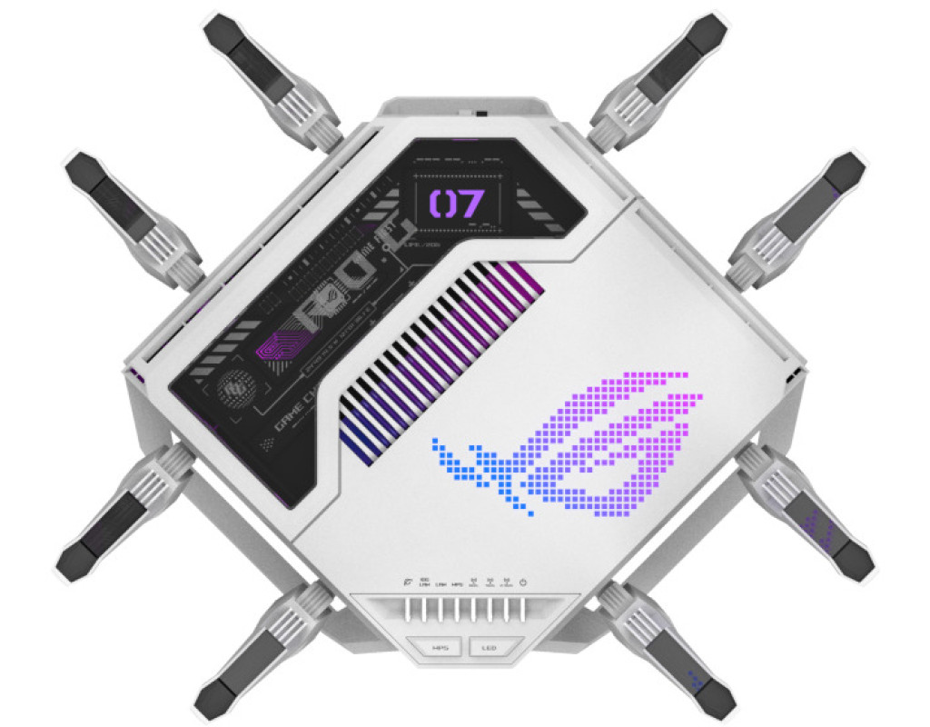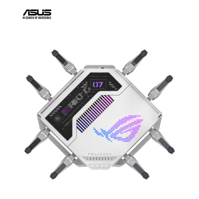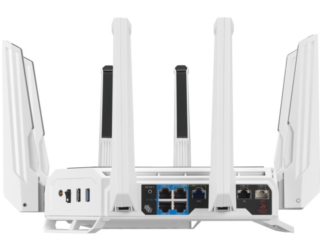 | ASUS ROG Rapture GT-BE19000AI: трехдиапазонный игровой маршрутизатор стандарта Wi-Fi 7 (802.11be): площадь покрытия до 325 м2, 200+ устройств, Triple Level Security, поддержка технологии AiMesh, два Ethernet-порта 10 Гбит/с, авто Booster, Gaming Network, Guest Network Pro