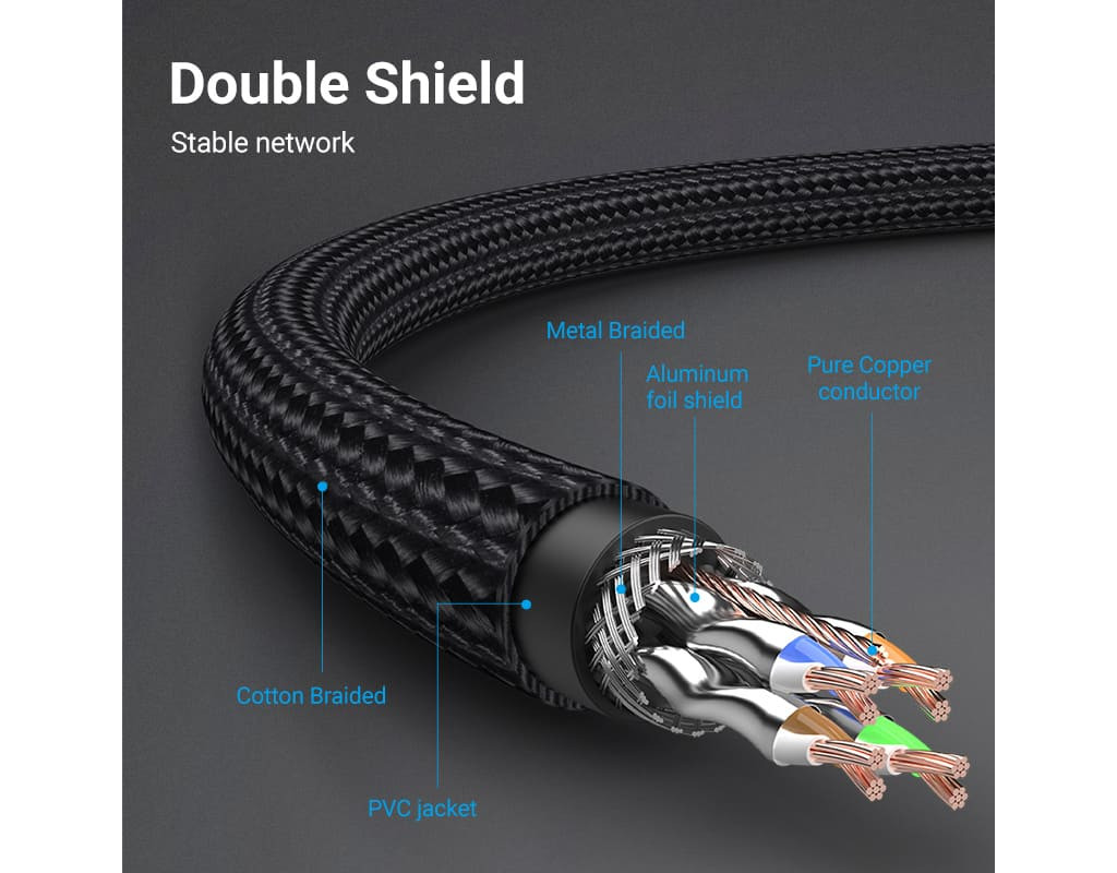Тип кабеля - S-FTP, Длина - 0.5 м, Категория - cat 8, Материал - медь, Цвет - черный