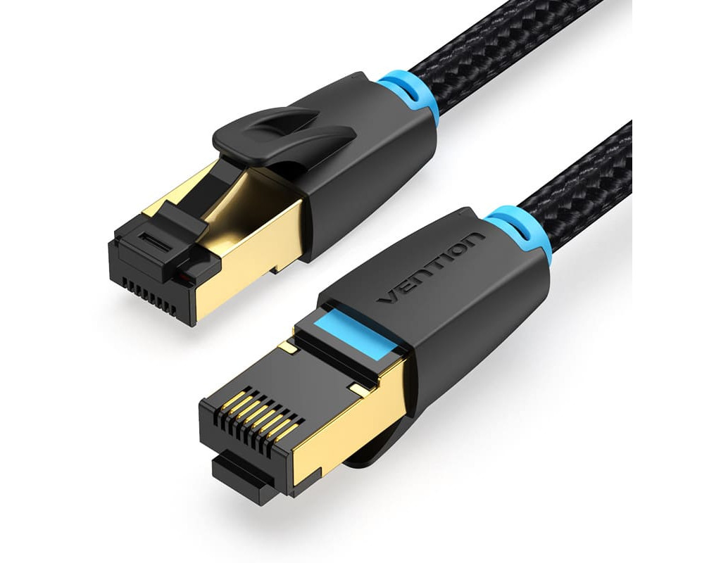 Патч-корд 0.5м, S/FTP cat 8 RJ-45 COPPER black Vention (IKGBD)