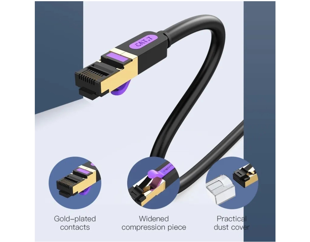 Тип кабеля - S-FTP, Длина - 0.5 м, Категория - cat 7, Материал - медь, Цвет - черный