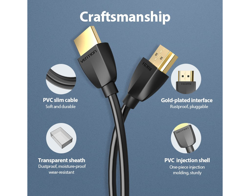 Кабель мультимедийный HDMI M to HDMI M 1.5m black Vention (AAIBG)