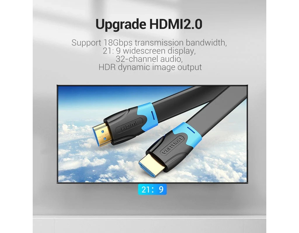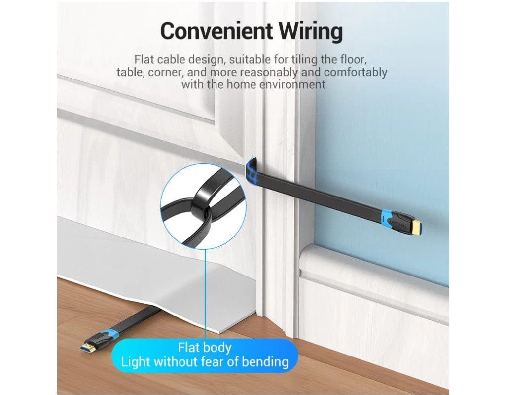 Кабель мультимедийный HDMI M to HDMI M 1.0m flat black Vention (AAKBF)