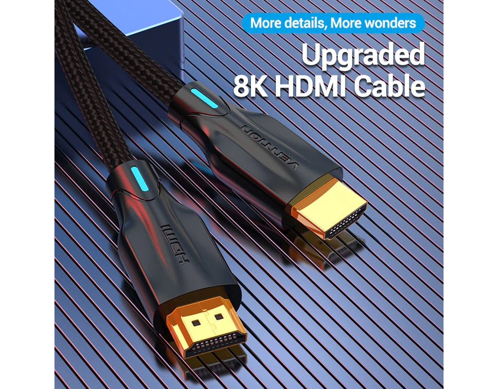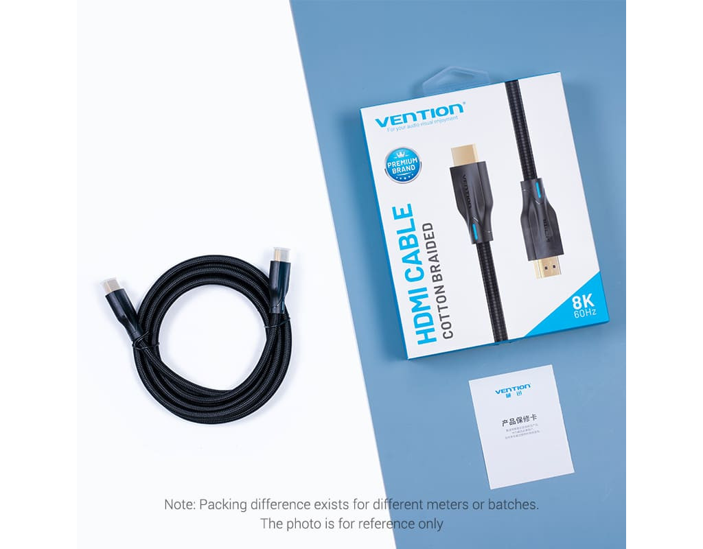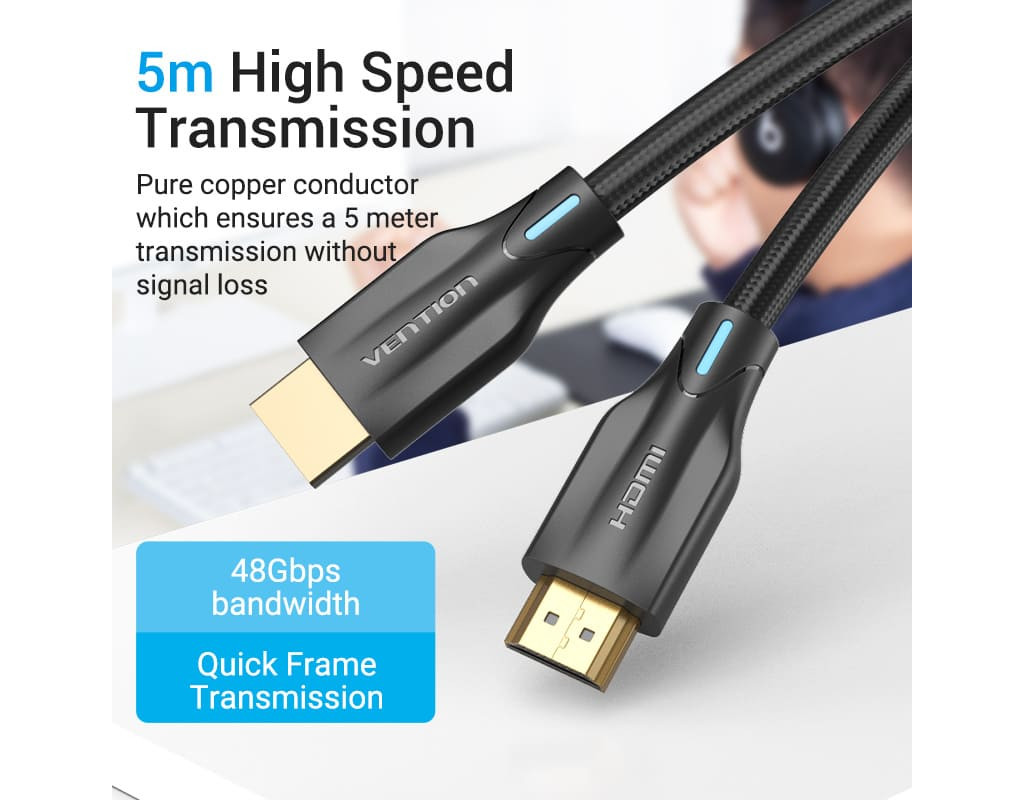 Кабель мультимедийный HDMI M to HDMI M 1.5m 8K cotton braided black Vention (AAUBG)