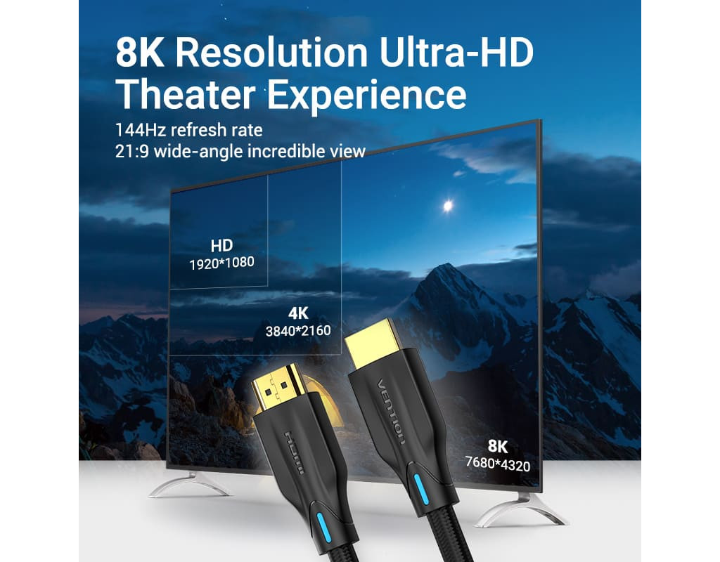 Кабель мультимедийный HDMI M to HDMI M 3.0m 8K cotton braided black Vention (AAUBI)
