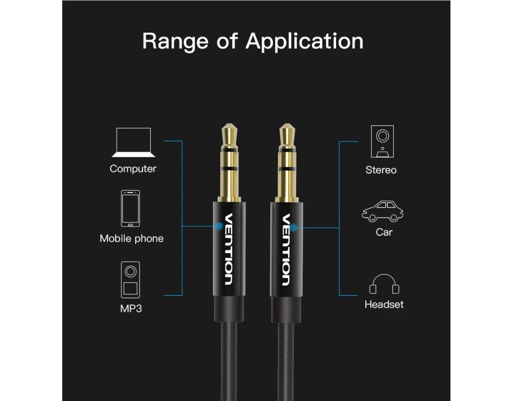 Кабель мультимедийный 3.5mm M to 3.5mm M 1.0m fabric black VENTION (BAGBF)
