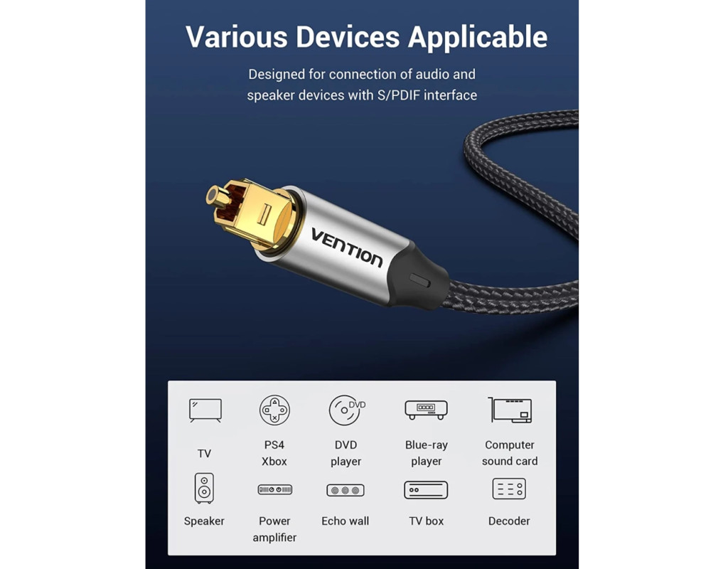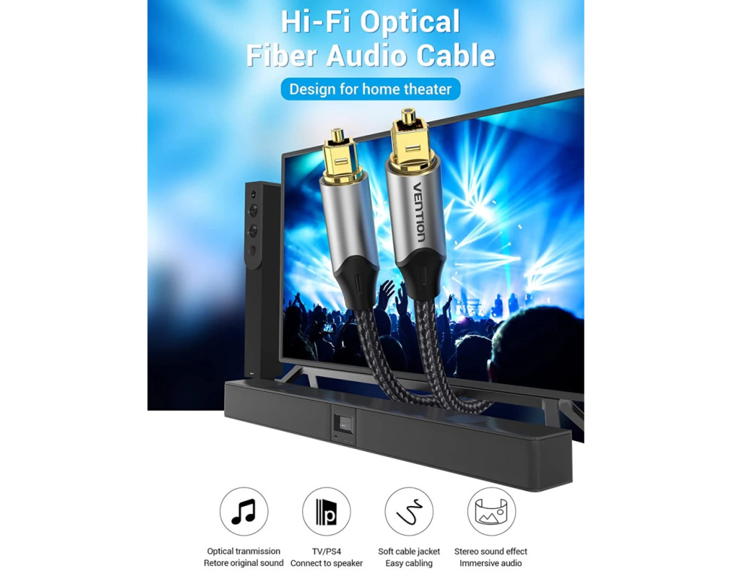 Кабель мультимедийный Optical Toslink 1.0m gray Vention (BAVHF)