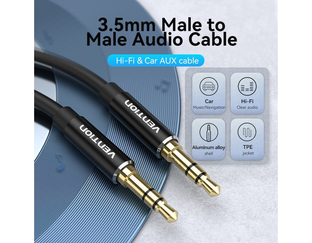Кабель мультимедийный 3.5mm M to 3.5mm M 1.5m black Vention (BAXBG)