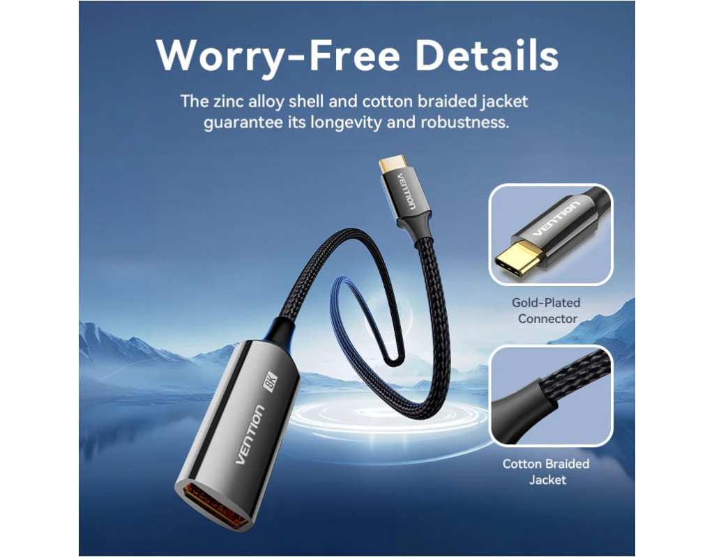 Кабель мультимедийный USB-C to DisplayPort M 0.25m 8K black Vention (CRGBC)