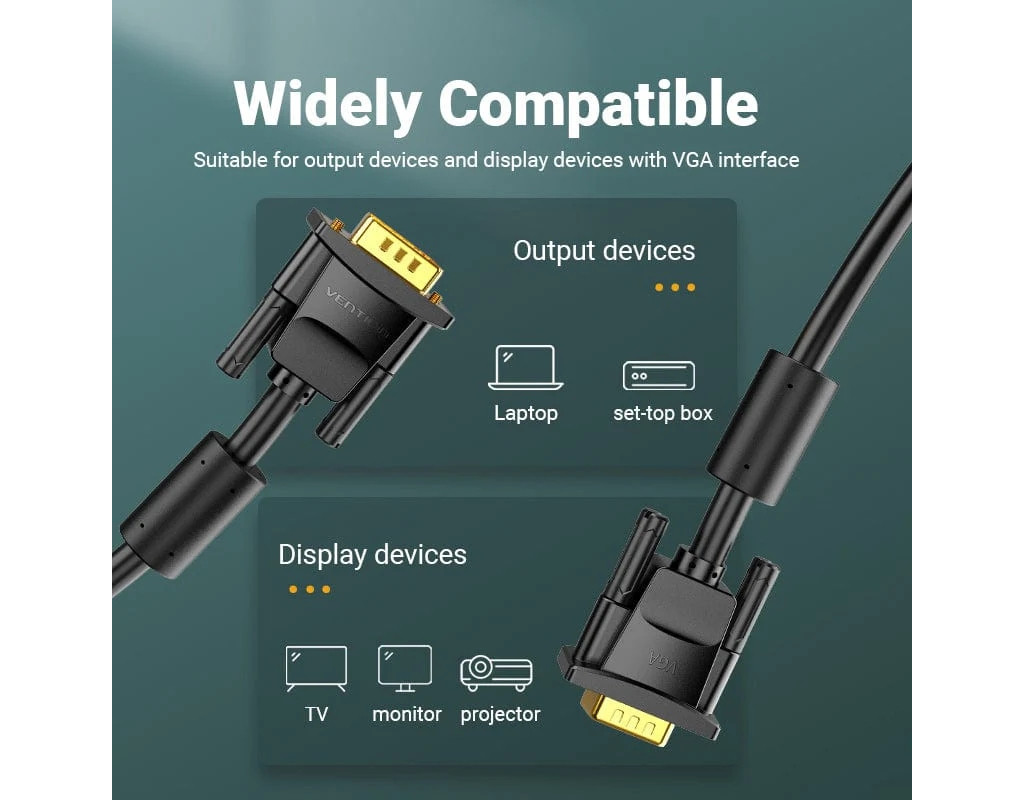 Кабель мультимедийный VGA M to VGA M 5.0m black Vention (DAEBJ)