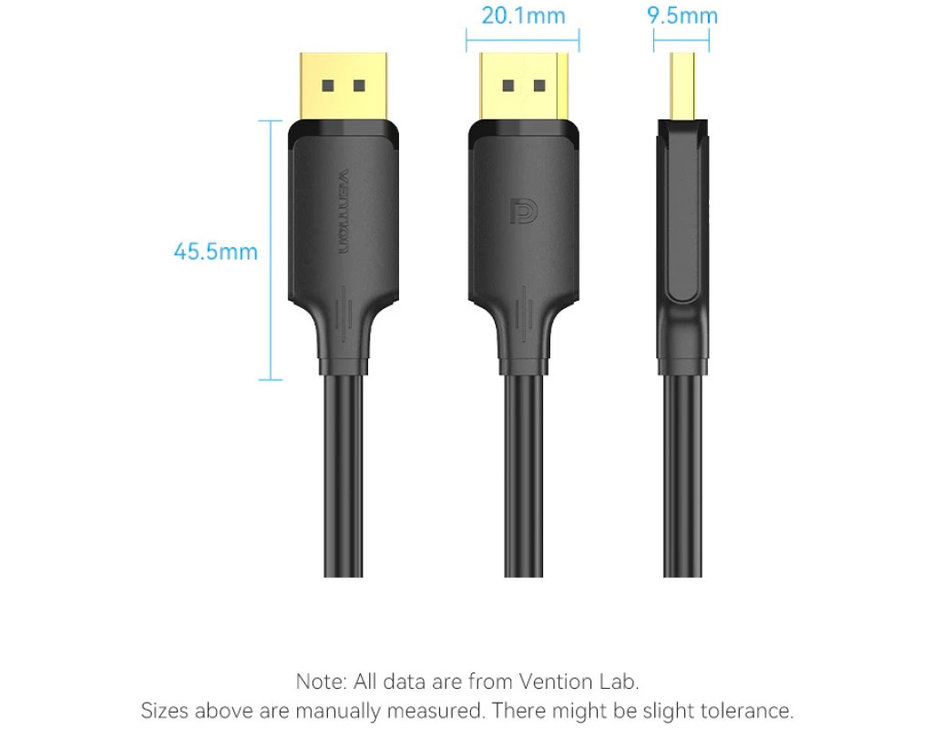 Кабель мультимедийный DisplayPort M to DisplayPort M 1.0m 4K black Vention (HAKBF)