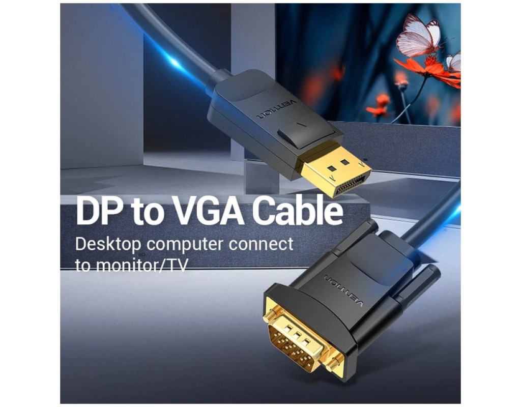 Кабель мультимедийный DisplayPort M to VGA M 1.5m black Vention (HBLBG)