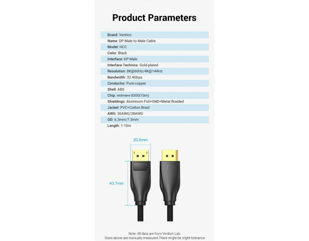 Кабель мультимедийный DisplayPort M to DisplayPort M 1.5m black Vention (HCCBG)