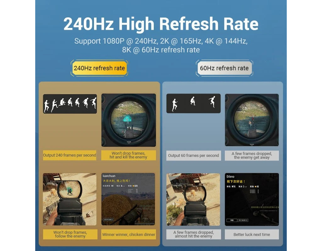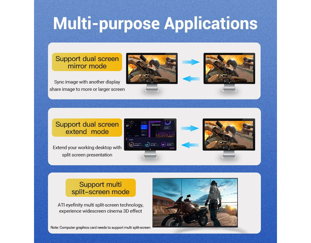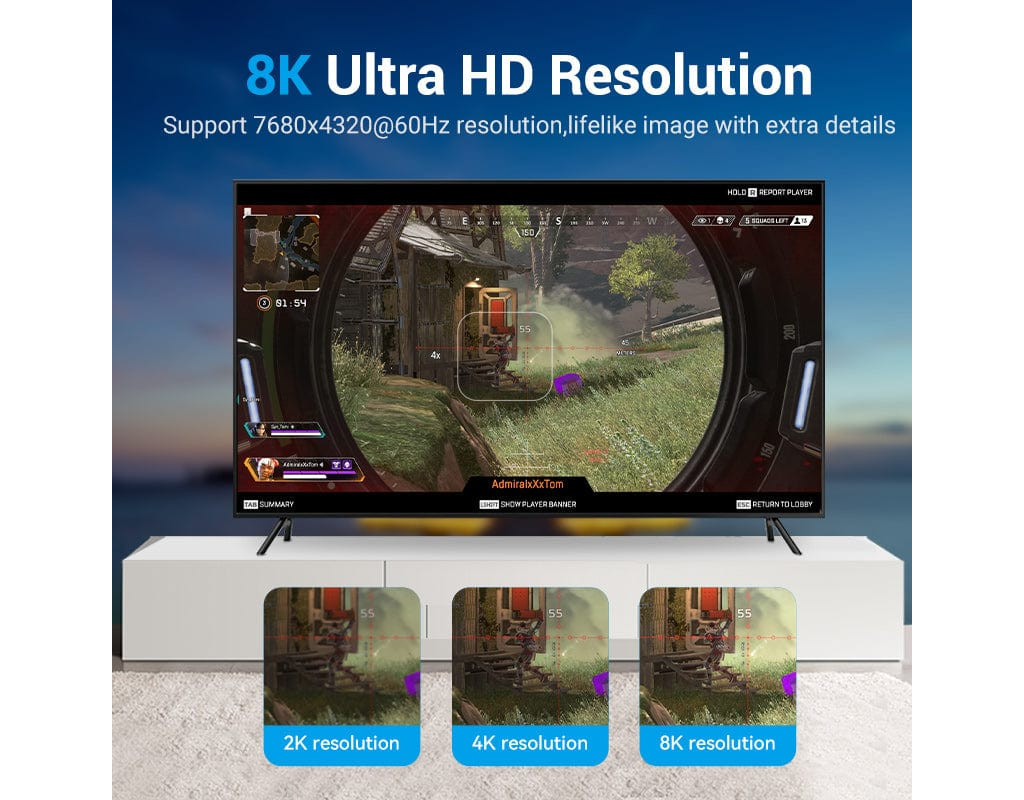 Цифровой кабель DisplayPort 1.4 для подключения источника видео и устройства отображения. Идеально подходит для передачи высокого разрешения 8K Ultra HD (7680x4320 при 60 Гц) и имеет емкость до 32.4 Гбит / с, а также поддерживает более 32 аудиоканалов. Кабель позволяет переключать устройства с помощью разъема DisplayPort. Как правило, кабель необходим для подключения дисплея к вашему компьютеру или аудио и видео оборудования с современным интерфейсом Displayport. Поддержка: 8K 60 Гц / 4K 144 Гц / 2K 165 Гц / 1080p 240 Гц / динамический HDR / PLCM / AC-3 / DTS и другие аудиоформаты |
