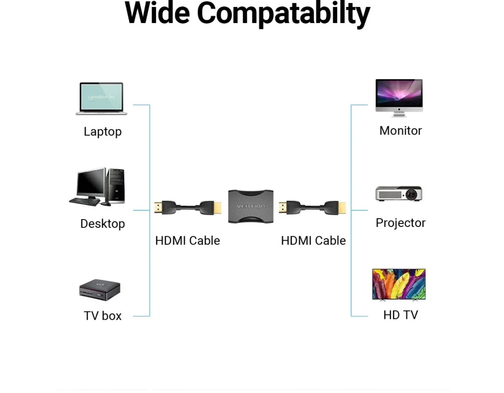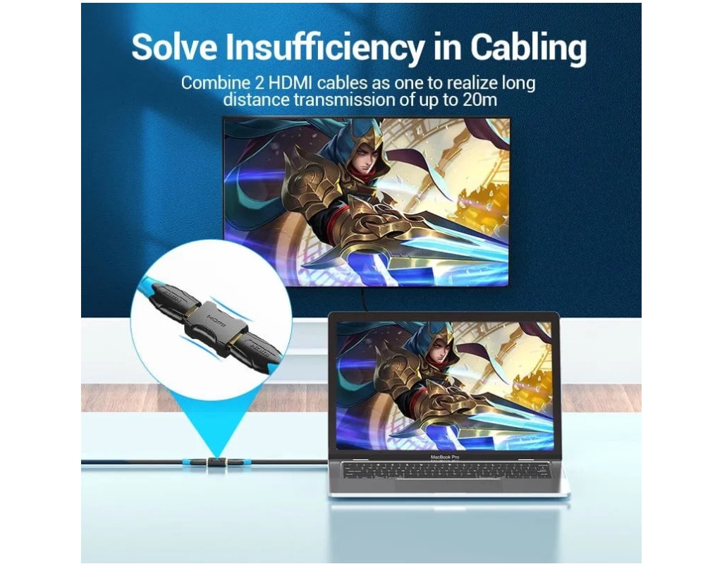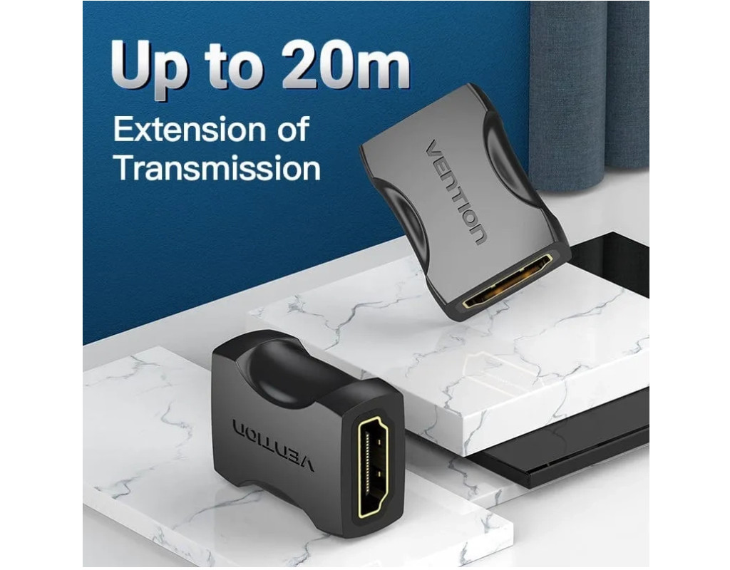 Переходник Vention HDMI F – HDMI F. Предназначен для соединения двух кабелей с разъемом HDMI 19M. |