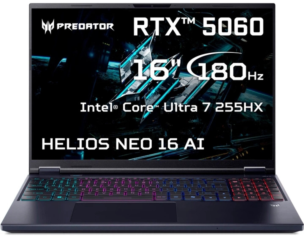 | Сделайте шаг в будущее с Predator Helios Neo 16 AI – мощным игровым компьютером, созданным для удобства в пути. Этот портативный компьютер оснащен процессором Intel Core Ultra, графической картой GeForce RTX 5060 и ярким 16-дюймовым IPS-дисплеем с разрешением WQXGA. Производительность на уровне настольного компьютера, где бы вы ни были. Получите легендарную производительность в играх с процессором Intel Core Ultra 7, обеспечивающим надплавный игровой процесс и готовым к будущему с искусственным интеллектом. Переведите такие задачи, как удаление фона и оптимизация звука, на процессор NPU для бесперебойного потокового воспроизведения, а Intel Application Optimization позволит повысить производительность в классических играх. Графические процессоры для ноутбуков GeForce RTX серии 50 Графические процессоры для ноутбуков GeForce RTX серии 50 расширяют возможности ноутбуков с графическими процессорами NVIDIA и тензорными ядрами RTX, повышая производительность ИИ в более чем 150 оптимизированных программах, включая лучшие инструменты для LLM, . Пробуждающий тьму дисплей Погрузитесь в увлекательные миры с IPS-дисплеем, где каждый пиксель светится независимо. Наслаждайтесь настоящими черными цветами, бесконечной контрастностью и глубиной цветов, которые придают чрезвычайную реалистичность, погружая вас в атмосферу игры и улучшая каждую визуальную деталь. Гарантированная максимальная производительность Наши усовершенствованные решения для охлаждения с двумя вентиляторами AeroBlade 3D 5-го поколения в сочетании с прецизионно нанесенной жидкой металлической термопастой гарантируют, что вы будете на пике своей производительности во время игрового сеанса или сеанса редактирования. Контроль с помощью Predatorsense и Experience Zone PredatorSense позволяет контролировать производительность системы в режиме реального времени – настраивайте режимы работы, управляйте скоростью вращения вентиляторов и настраивайте режим RGB-подсветки. Воспользуйтесь функциями Experience Zone с искусственным интеллектом, например PurifiedView для автоматического кадрирования и PurifiedVoice 2.0 для улучшения четкости голоса. Acer ProCam Acer ProCam автоматически распознает основные моменты игрового процесса и записывает их. Acer Purifiedview 2.0 Погрузитесь в свет четкости, улучшенной искусственным интеллектом, благодаря усовершенствованным функциям портретной съемки, сверхчеткого изображения и автоматического кадрирования. Наслаждайтесь естественным размытием фона, коррекцией взгляда и функцией Acer TNR для получения ярких и четких изображений даже при низкой освещенности. Идеально подходит для проведения онлайн-встреч, прямых трансляций и видеозвонков. Acer PurifiedVoice 2.0 Используя алгоритмы искусственного интеллекта и 3-й микрофон для обнаружения и устранения нежелательного шума фона, Acer PurifiedVoice 2.0 обеспечивает чистый звук без отвлекающих факторов для более увлекательного общения. Динамическая 4-зонная RGB-подсветка Осветите рабочее место 4-зонной настраиваемой RGB-подсветкой. Настройте каждую зону, чтобы создать идеальную атмосферу для игры, работы или потокового просмотра, добавив яркое, персонализированное прикосновение к каждому нажатию клавиш. Оптимизация с помощью Intel Application Optimization Почувствуйте постоянное развитие благодаря Intel Application Optimization. Обновления, управляемые искусственным интеллектом, точно настраивают производительность вашей системы, отдавая предп