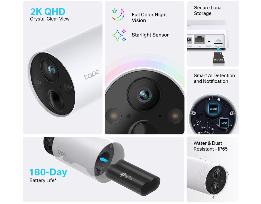 | Умная беспроводная система видеонаблюдения Tapo C420S2 с двумя камерами обеспечивает чёткое изображение в формате 2K QHD, цветное ночное видение и ИИ-обнаружение людей, животных и автомобилей. До 180 дней автономной работы и защита по стандарту IP65 делают её отличным решением для улицы. |