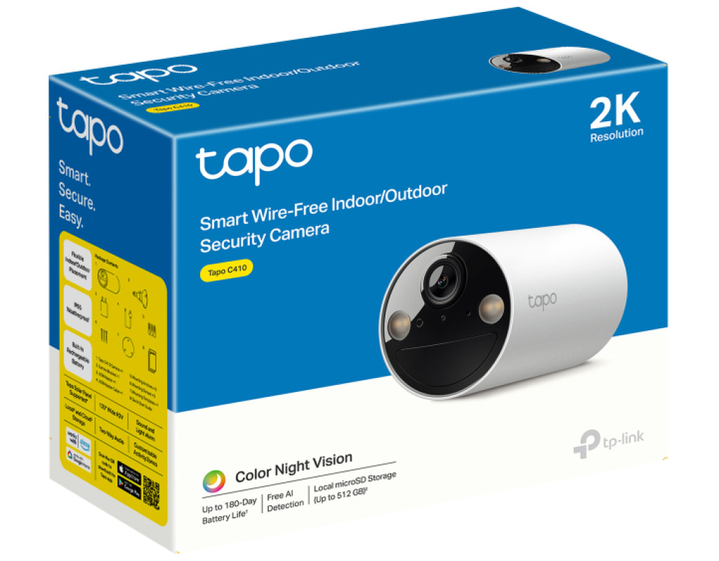 TP-LINK Tapo C410 — це бездротова камера нового покоління, яка поєднує зручність, автономність і розумні функції, щоб ви завжди були впевнені у безпеці свого дому.