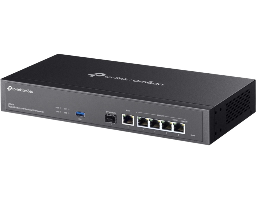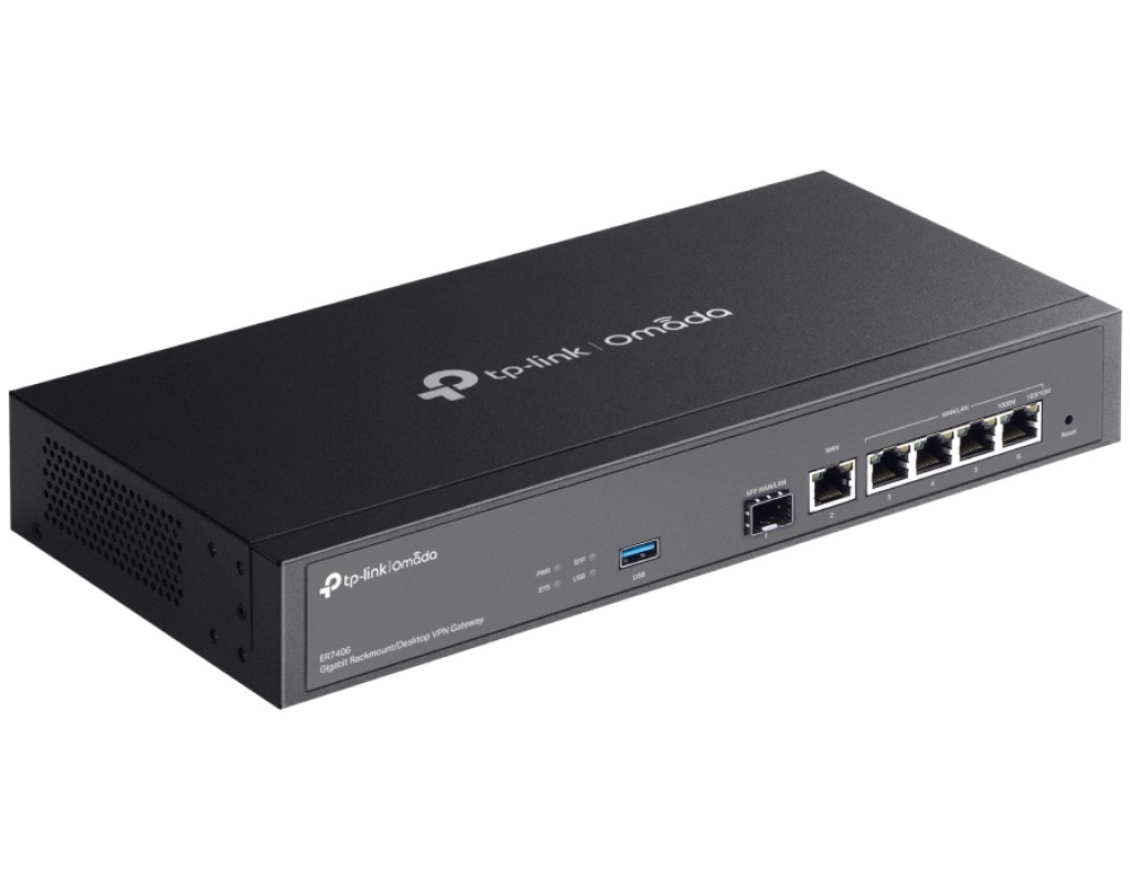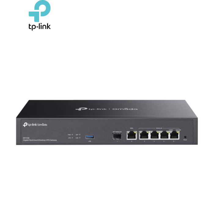 | TP-LINK ER7406 (Omada) — гігабітний VPN-шлюз для бізнесу з 5 WAN та хмарним керуванням TP-LINK ER7406 — це потужний маршрутизатор/шлюз серії Omada, створений для офісів, магазинів, закладів HoReCa та компаній, яким потрібні стабільний інтернет, резервування каналів, високий рівень безпеки та централізоване керування мережею. Пристрій підтримує до 5 WAN-портів, гігабітні інтерфейси та сучасні VPN-протоколи, включно з WireGuard. Модель підходить як для настільного встановлення, так і для монтажу в 19" стійку (rackmount). 5 WAN для балансування та резервування ER7406 підтримує інтелектуальний Load Balancing на до 5 WAN-ліній, що дозволяє:
