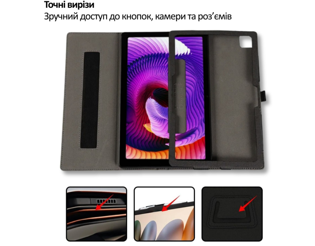 "Чохол BeCover Slimbook для планшета Teclast T60AI 11.97" BeCover Slimbook — це стильний, тонкий і практичний чохол, створений спеціально для планшета Teclast T60AI 11.97". Він поєднує в собі елегантний дизайн, надійний захист і зручність у щоденному використанні. Зовнішня частина виготовлена з преміальної PU-шкіри, яка приємна на дотик, стійка до зношування та захищає корпус планшета від подряпин, потертостей і дрібних ударів. Внутрішня поверхня має м’яку підкладку з мікрофібри, що додатково оберігає екран від пошкоджень і забруднень. Чохол має тонкий та легкий дизайн, не обтяжує пристрій і зберігає його акуратний вигляд. Конструкція точно повторює форму планшета, тому зберігається повний доступ до всіх кнопок, роз’ємів та камери. Завдяки продуманій конструкції, чохол легко трансформується у зручну підставку з двома кутами нахилу: менший кут — для роботи, набору тексту та серфінгу в інтернеті; більший кут — для комфортного перегляду відео та фільмів. Окрема перевага — зручна фіксація для руки, яка дозволяє впевнено тримати планшет під час читання або використання на ходу. BeCover Slimbook — це надійний захист, комфорт у використанні та охайний вигляд вашого Teclast T60AI 11.97" щодня. ⭐ Переваги: Точна сумісність з Teclast T60AI 11.97" Преміальна PU-шкіра зовні М’яка підкладка з мікрофібри всередині Тонкий і легкий дизайн Функція підставки з двома кутами нахилу Зручна фіксація для руки Повний доступ до всіх роз’ємів і кнопок Захист від подряпин і щоденних пошкоджень" |