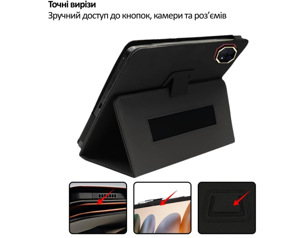 "Чохол BeCover Slimbook для планшета Teclast T65 Plus 13.4" BeCover Slimbook — це стильний, тонкий і практичний чохол, створений спеціально для планшета Teclast T65 Plus 13.4". Він поєднує в собі елегантний дизайн, надійний захист і зручність у щоденному використанні. Зовнішня частина виготовлена з преміальної PU-шкіри, яка приємна на дотик, стійка до зношування та захищає корпус планшета від подряпин, потертостей і дрібних ударів. Внутрішня поверхня має м’яку підкладку з мікрофібри, що додатково оберігає екран від пошкоджень і забруднень. Чохол має тонкий та легкий дизайн, не обтяжує пристрій і зберігає його акуратний вигляд. Конструкція точно повторює форму планшета, тому зберігається повний доступ до всіх кнопок, роз’ємів та камери. Завдяки продуманій конструкції, чохол легко трансформується у зручну підставку з двома кутами нахилу: менший кут — для роботи, набору тексту та серфінгу в інтернеті; більший кут — для комфортного перегляду відео та фільмів. Окрема перевага — зручна фіксація для руки, яка дозволяє впевнено тримати планшет під час читання або використання на ходу. BeCover Slimbook — це надійний захист, комфорт у використанні та охайний вигляд вашого Teclast T65 Plus 13.4" щодня. ⭐ Переваги: Точна сумісність з Teclast T65 Plus 13.4" Преміальна PU-шкіра зовні М’яка підкладка з мікрофібри всередині Тонкий і легкий дизайн Функція підставки з двома кутами нахилу Зручна фіксація для руки Повний доступ до всіх роз’ємів і кнопок Захист від подряпин і щоденних пошкоджень" |
