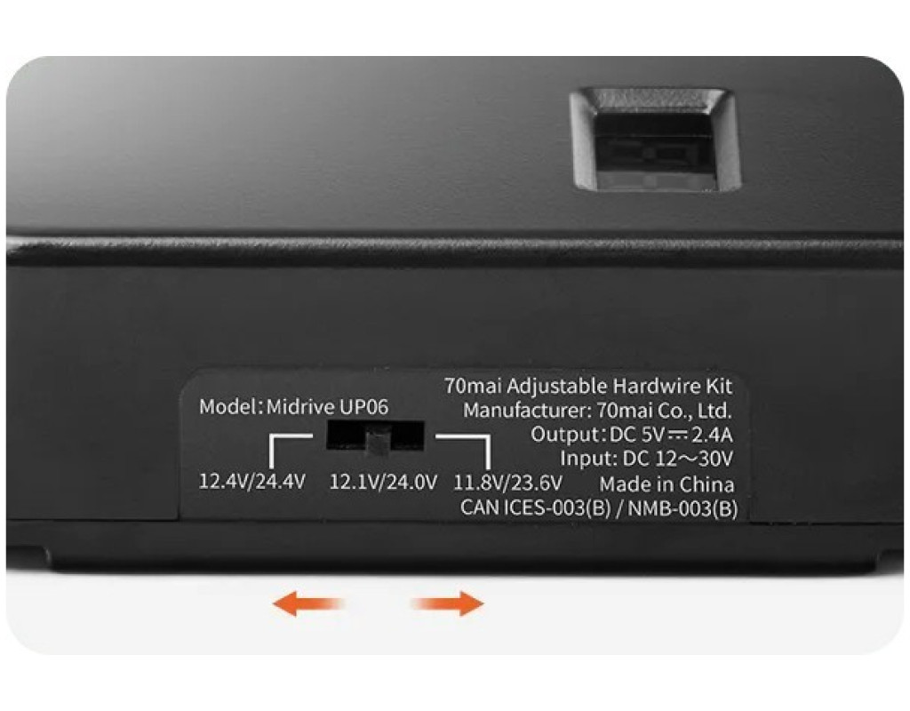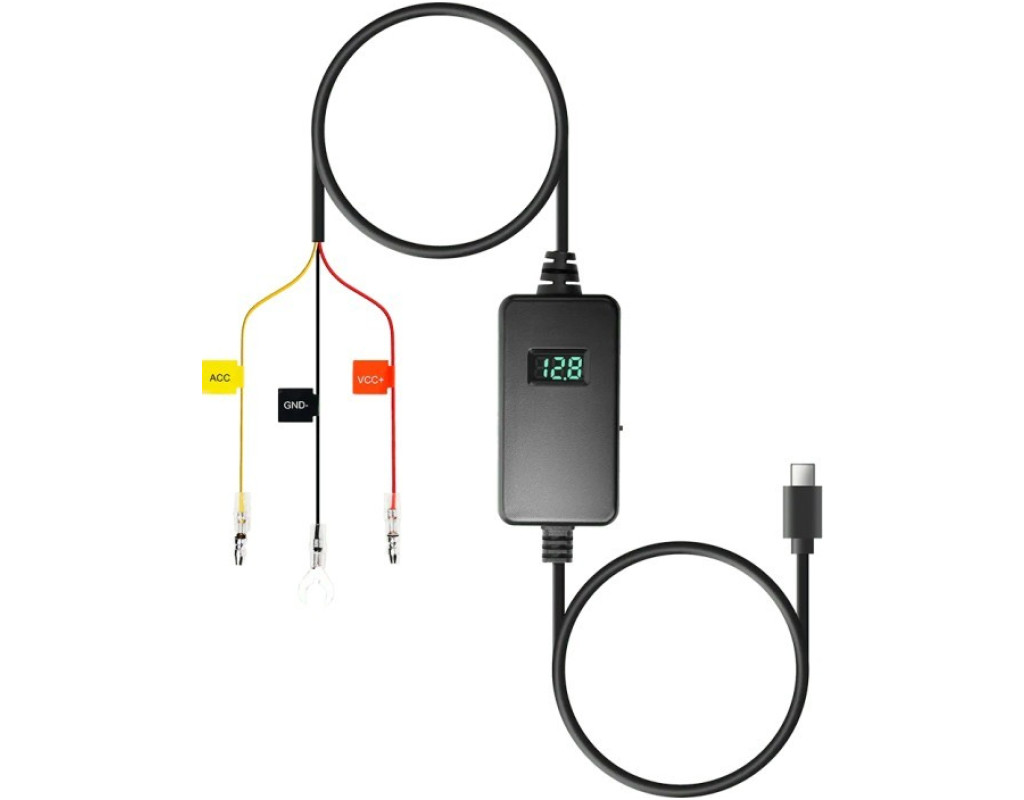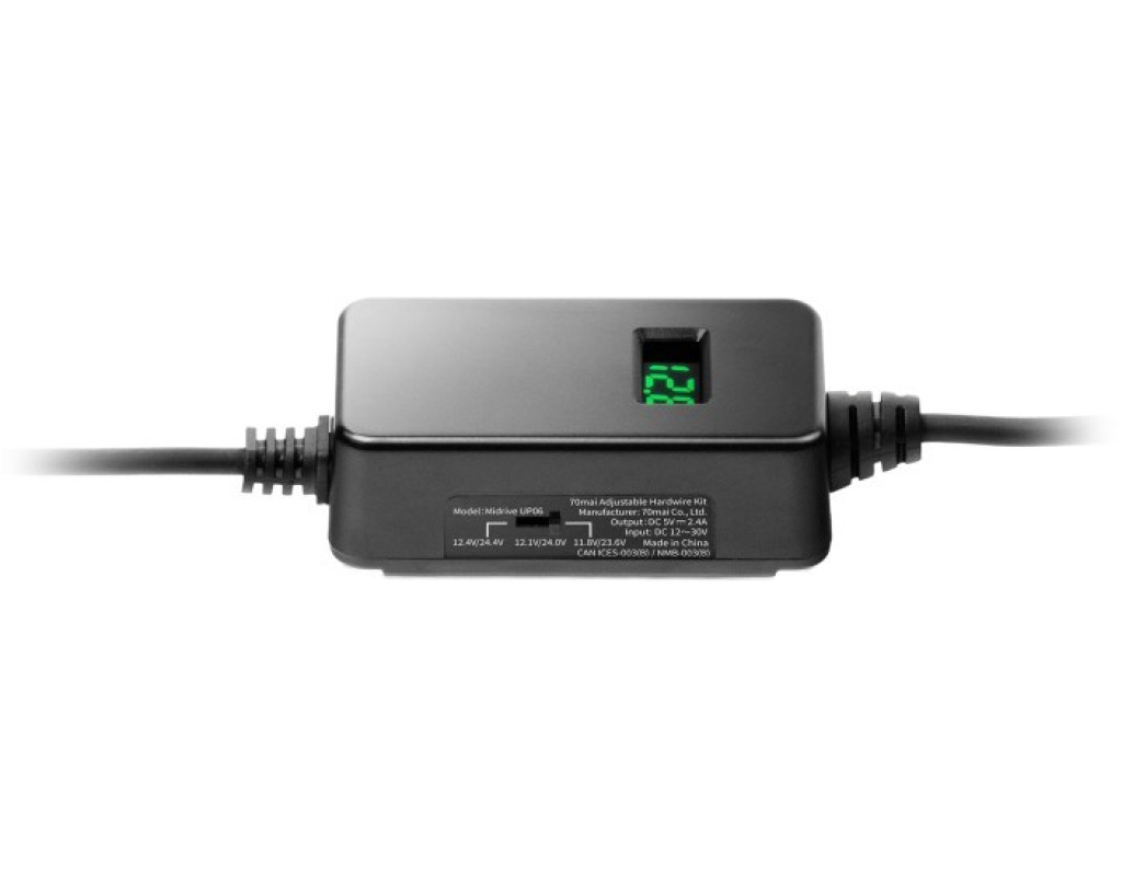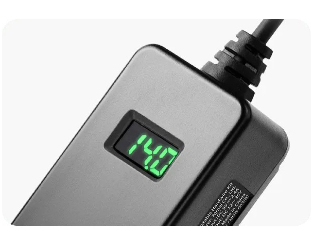 Комплект регулируемых жёстких проводов 70mai: Легко установить Трёхуровневая регулируемая отсечка по низкому напряжению Отображение напряжения батареи в реальном времени Совместимо с автомобильными системами 12–30 В Стабильный источник питания 5 В/2,4 А