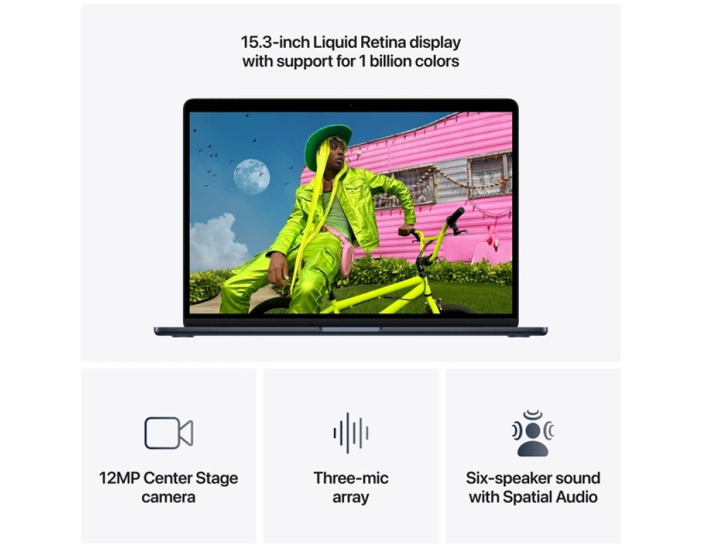 Мощность нового поколения Чип M5 открывает невероятные возможности для работы и творчества. Справляйтесь с ресурсоемкими задачами, монтируйте видео в высоком разрешении и наслаждайтесь плавной графикой в новейших играх. С MacBook Air 15" ваша продуктивность выходит на новый уровень. Пространство для ваших дел Большой 15-дюймовый дисплей позволяет комфортно работать в режиме многозадачности: открывайте несколько окон рядом, редактируйте объемные таблицы и создавайте детальные проекты без необходимости подключать внешний монитор. Учёба на максимуме возможностей MacBook Air 15" — идеальный инструмент для студентов и исследователей. Используйте возможности Apple Intelligence для анализа сложных данных, мгновенного пересказа лекций и создания безупречных презентаций. Профессиональный подход к задачам Работа с текстами, управление проектами и видеоконференции становятся еще эффективнее. Тонкий корпус и внушительный экран делают этот ноутбук идеальным балансом между портативностью и функциональностью. Кинематографический опыт Дисплей Liquid Retina с поддержкой миллиарда цветов и увеличенной диагональю делает просмотр фильмов и стримов захватывающим. Погрузитесь в контент с невероятной глубиной и яркостью. Энергия на весь день Забудьте о поиске розетки. Благодаря энергоэффективности чипа M5, MacBook Air 15" готов работать с самого утра и до поздней ночи, сохраняя тонкость и легкость вашего любимого устройства. Визуальное и звуковое превосходство Камера FaceTime HD и система из шести динамиков с поддержкой Spatial Audio обеспечивают кристально чистый звук и профессиональное качество изображения во время звонков и отдыха. Интеллектуальная экосистема Ваши любимые AI-сервисы, включая ChatGPT и инструменты Adobe, работают на MacBook Air 15" молниеносно. Система оптимизирована для глубокой интеграции с искусственным интеллектом, упрощая ваш повседневный путь к результату. Создан для Apple Intelligence Apple Intelligence — это ваша персональная интеллектуальная система, которая помогает писать тексты, редактировать изображения и расставлять приоритеты в задачах. Конфиденциальность и мощь M5 объединены для вашего удобства. |