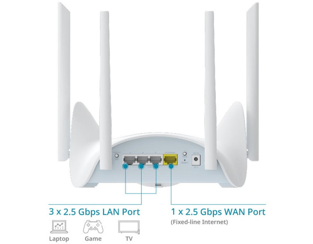 | Маршрутизатор D-Link R36 BE3600 – это двухдиапазонное устройство стандарта Wi-Fi 7 с поддержкой Multi-Link Operation и пропускной способностью до 3600 Мбит/с (688 Мбит/с на 2,4 ГГц + 2882 Мбит/с на 5 ГГц). Четыре порта 2,5 Gigabit Ethernet (1 WAN + 3 LAN) обеспечивают быстрое проводное подключение для NAS, ПК или игровых консолей. AI-функции встроенного управления оптимизируют трафик, каналы и сеть Mesh, а четыре внешние антенны дают стабильное покрытие в помещениях среднего размера. |