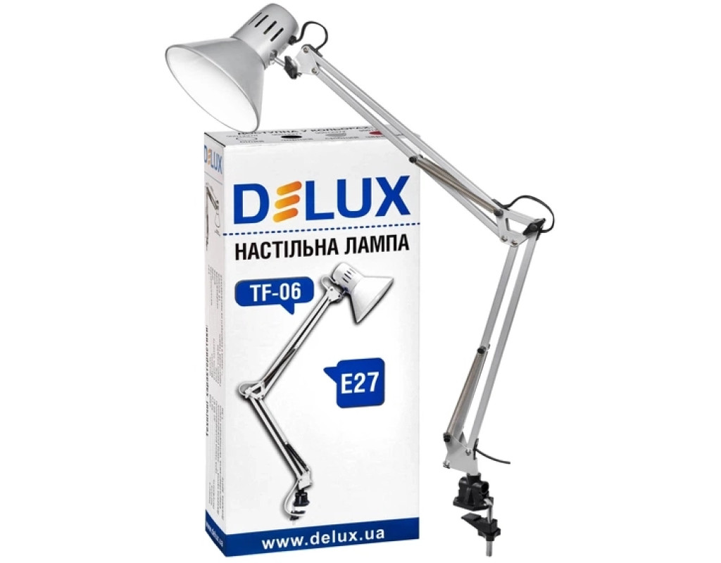Настольная лампа Delux TF-06 обеспечивает возможность свободного перемещения источника света над поверхностью стола, а также регулировку высоты лампы над столом, что дает оптимальный уровень освещенности для любых видов работ. Незаменимый помощник на вашем рабочем столе как дома, так и в офисе. Эргономичный дизайн, современные материалы и функциональность – все это объединено в настольных лампах Delux. |