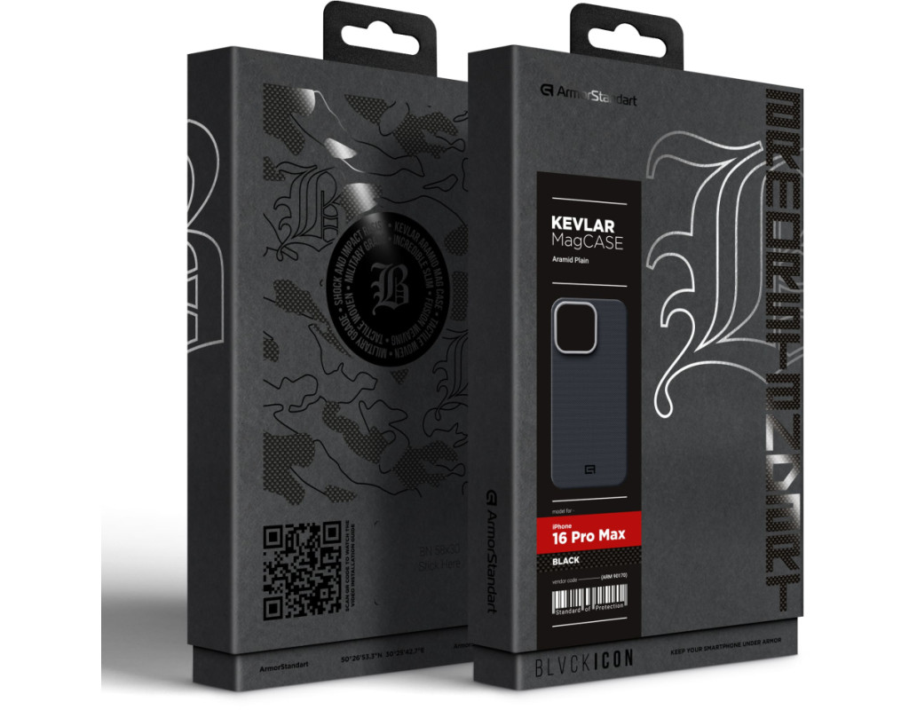 ArmorStandart BlackIcon Aramid Plain MagCase створений як елемент технічної екосистеми, а не як декоративна накладка. Його структура побудована на Kevlar — арамідному волокні, яке використовують у сферах, де життєво важливі жорсткість, контроль та стабільність під навантаженням. Для смартфона це означає структурний захист без збільшення об’єму.