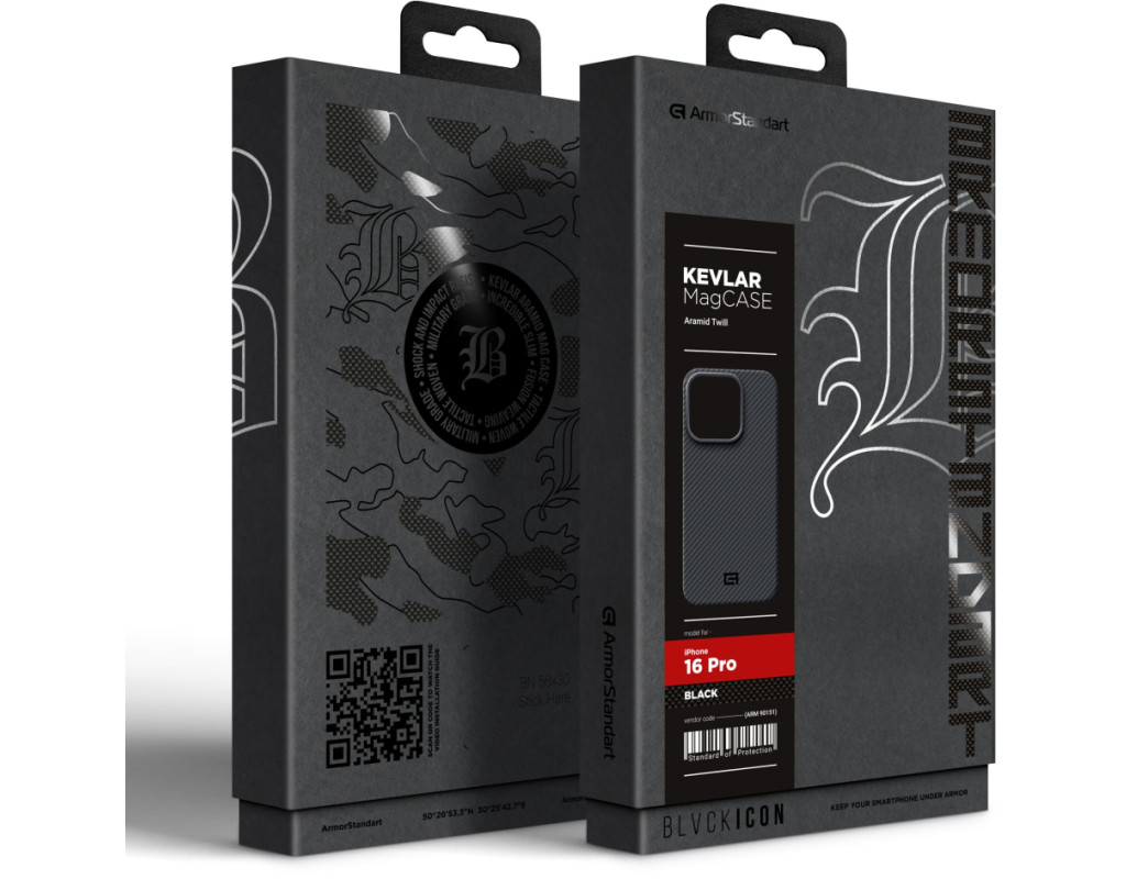 ArmorStandart BlackIcon Aramid Twill MagCase створений як елемент технічної екосистеми, а не як декоративна накладка. Його структура побудована на Kevlar — арамідному волокні, яке використовують у сферах, де життєво важливі жорсткість, контроль та стабільність під навантаженням. Для смартфона це означає структурний захист без збільшення об’єму.