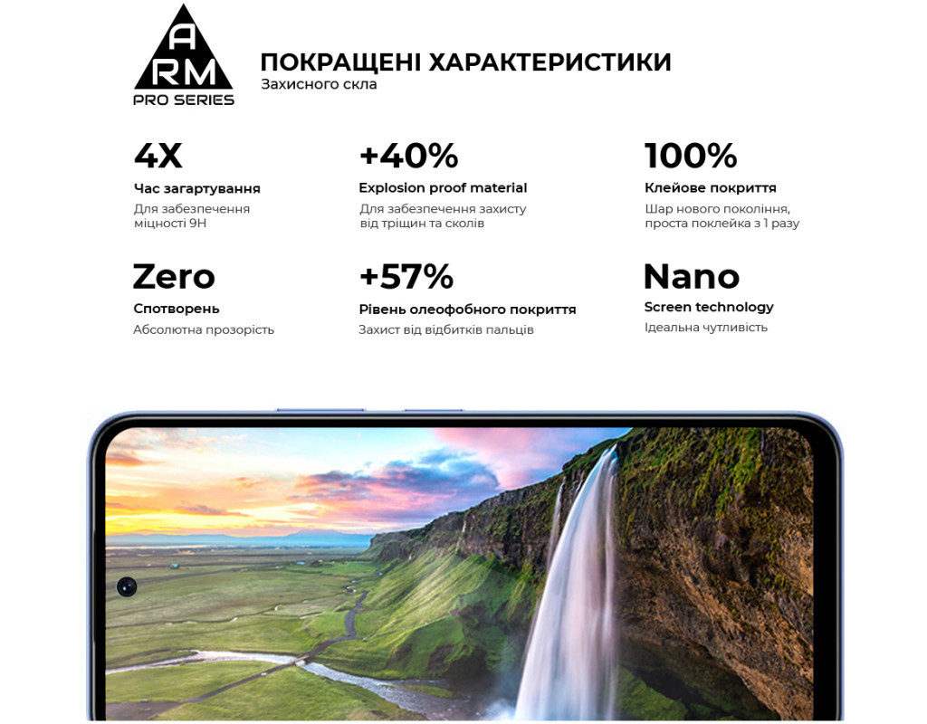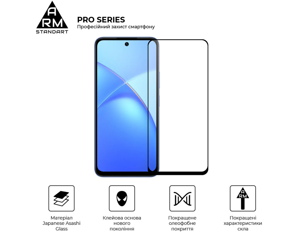 Захисне скло Armorstandart Pro Series - це абсолютно новий рівень захисту дисплея смартфона. У виробництві використовується матеріал Japenese Asahi Glass, який проходить загартування впродовж 4 годин. Це забезпечує ідеальну прозорість захисного покриття без спотворень зображення, а також потужний захист від тріщин і подряпин. Скло ніяк не впливає на чуйність тачскрина. У ньому міститься спеціальний матеріал, що перешкоджає появі відколів. Верхня частина скла містить покращене олеофобне й гідрофобне покриття. Під час використання скла це забезпечує природні тактильні відчуття - пальці легко ковзають по поверхні. Водночас зображення відбивається з автентичною яскравістю й чіткістю без спотворень. Задня частина по всій площі покрита клейовою основою нового покоління. Завдяки цьому досягається повний брак пухирців і можливість переклеювання скла в разі первісного нерівного встановлення. Захисне скло Armorstandart Pro Series має оптимальні габарити та товщину на 0,3 мм. Передбачено вирізи під усі датчики, камери та роз'єми. До комплекту входить усе потрібне для швидкого та комфортного встановлення. Особливості: