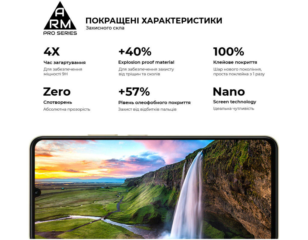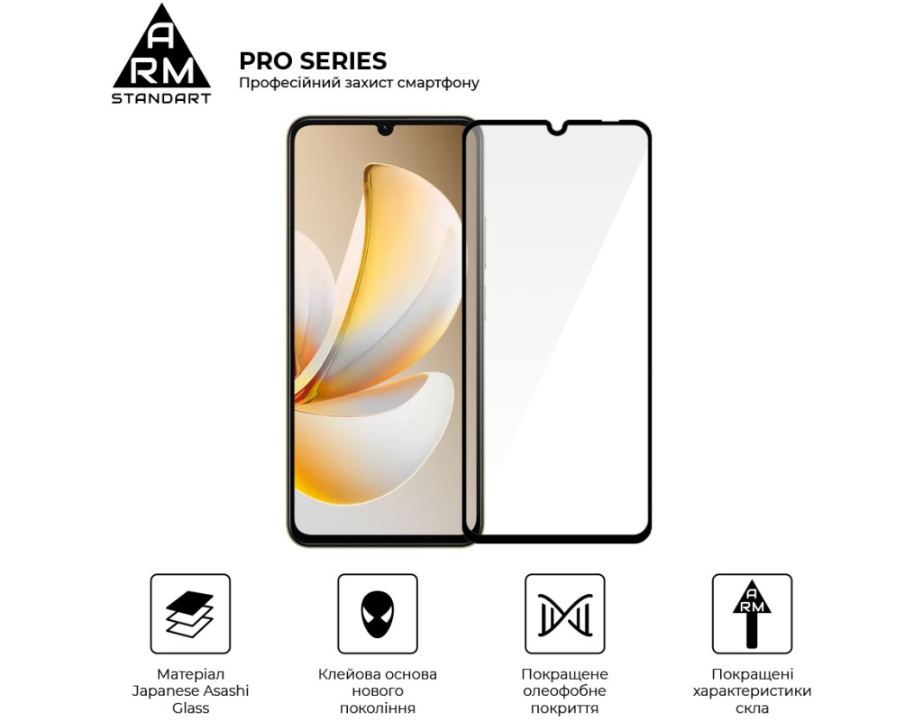 Захисне скло Armorstandart Pro Series - це абсолютно новий рівень захисту дисплея смартфона. У виробництві використовується матеріал Japenese Asahi Glass, який проходить загартування впродовж 4 годин. Це забезпечує ідеальну прозорість захисного покриття без спотворень зображення, а також потужний захист від тріщин і подряпин. Скло ніяк не впливає на чуйність тачскрина. У ньому міститься спеціальний матеріал, що перешкоджає появі відколів. Верхня частина скла містить покращене олеофобне й гідрофобне покриття. Під час використання скла це забезпечує природні тактильні відчуття - пальці легко ковзають по поверхні. Водночас зображення відбивається з автентичною яскравістю й чіткістю без спотворень. Задня частина по всій площі покрита клейовою основою нового покоління. Завдяки цьому досягається повний брак пухирців і можливість переклеювання скла в разі первісного нерівного встановлення. Захисне скло Armorstandart Pro Series має оптимальні габарити та товщину на 0,3 мм. Передбачено вирізи під усі датчики, камери та роз'єми. До комплекту входить усе потрібне для швидкого та комфортного встановлення. Особливості: