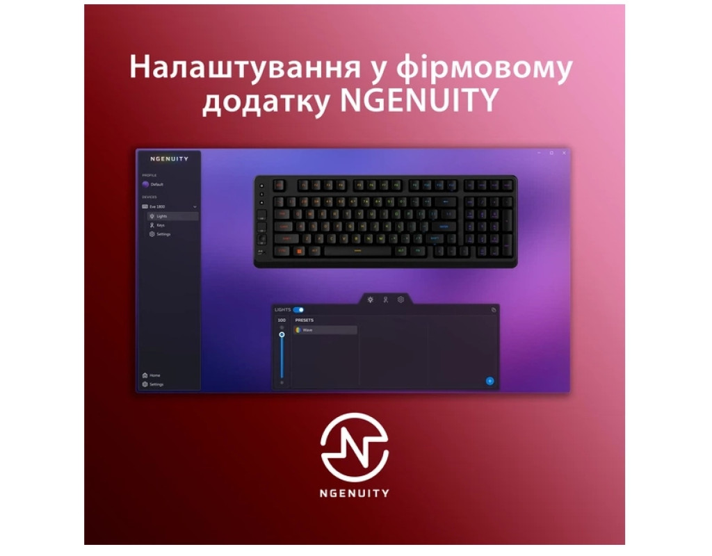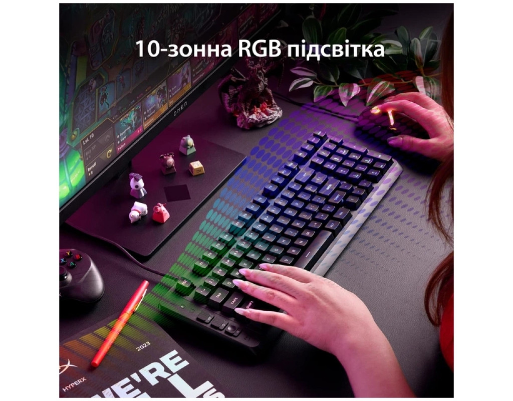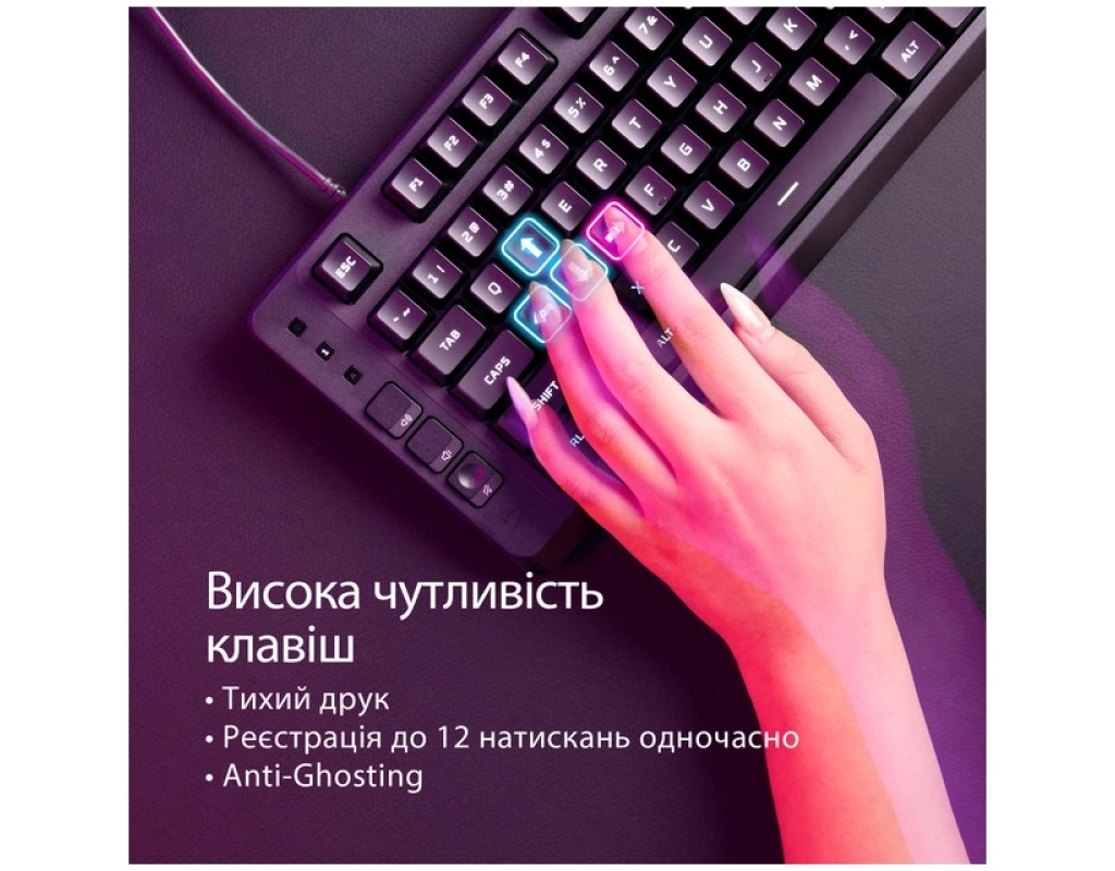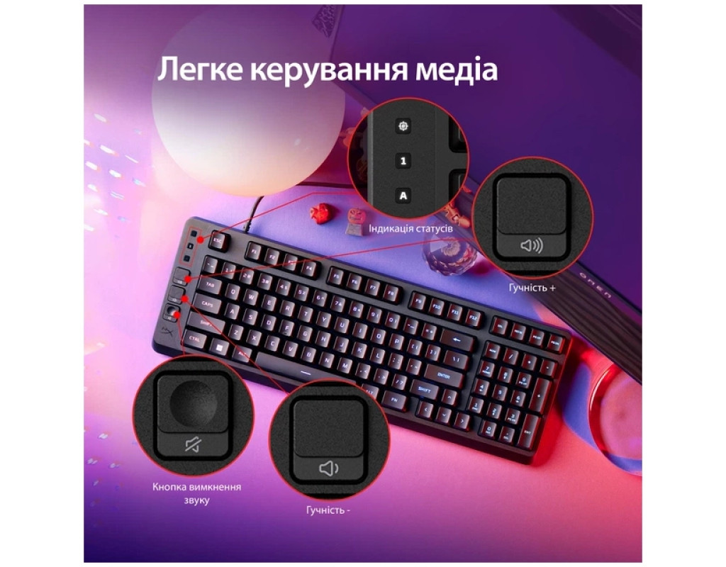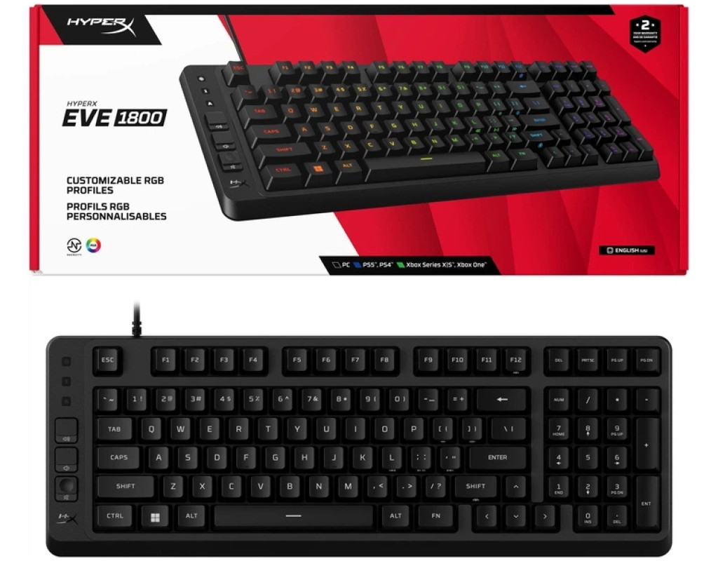 Игровой комфорт и компактность Игровая клавиатура HyperX Eve 1800 предназначена для максимально удобного погружения в мир игр. Ее компактный форм-фактор 1800 позволяет высвободить больше места на столе для мыши, гарнитуры или других аксессуаров, сохраняя полную функциональность полноразмерной клавиатуры. Благодаря эргономичному расположению клавиш пользователь получает комфорт даже во время продолжительных игровых сессий. Яркая подсветка Клавиатура оснащена 10-зонной RGB подсветкой, которая легко настраивается через программное обеспечение HyperX NGENUITY. Световые эффекты из 16777216 цветов создают уникальную атмосферу игрового пространства, а пять уровней яркости позволяют подобрать оптимальное освещение для любых условий. Высокая точность и функциональность Мембранные переключатели обеспечивают приятные и мягкие нажатия клавиш, которые не утомляются во время игры. Поддержка Anti-ghosting и Rollover на 12 клавиш гарантирует, что каждое нажатие будет точно передано даже в сложных комбинациях. Выделенные медиа-кнопки позволяют быстро управлять музыкой или видео без прерывания игры. Совместимость и надежность HyperX Eve 1800 совместима с ПК, PlayStation 5, PlayStation 4, Xbox Series X|S и Xbox One, обеспечивая универсальное использование. Кабель USB-A длиной 1.5 м с резиновым покрытием обеспечивает стабильное подключение, а встроенная память позволяет хранить до трех пользовательских профилей. Вес клавиатуры вместе с кабелем составляет 653 г, что делает его устойчивым на любой поверхности. Совершенный игровой аксессуар Стильный и производительный дизайн, высокоточные мембранные клавиши и яркая RGB подсветка делают HyperX Eve 1800 идеальным выбором для любого геймера. Эта клавиатура не только подчеркивает индивидуальность игрового пространства, но открывает новый уровень комфорта и контроля во время игр. |