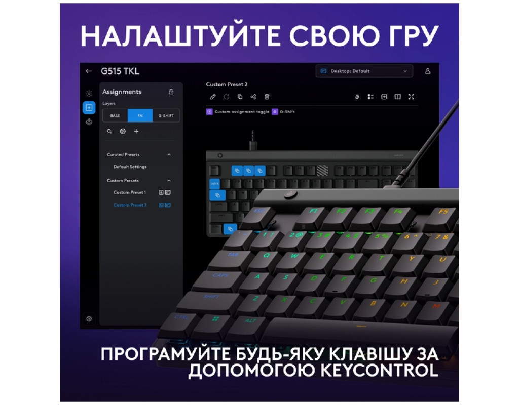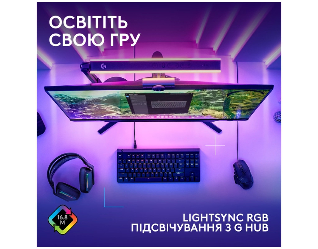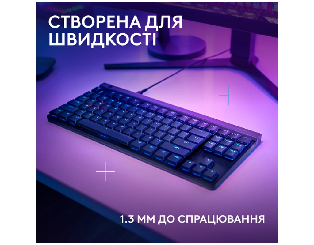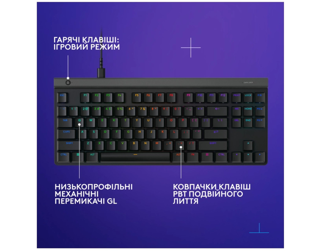 игровая, мультимедийная, с подсветкой, механическая, проводная, USB, TKL, Подсветка - RGB, английская, украинская, Переключатели (Switches) - GL Tactile, программируемые клавиши, Шнур - 1.8 м, 368 х 150 х 22 мм, 840 г