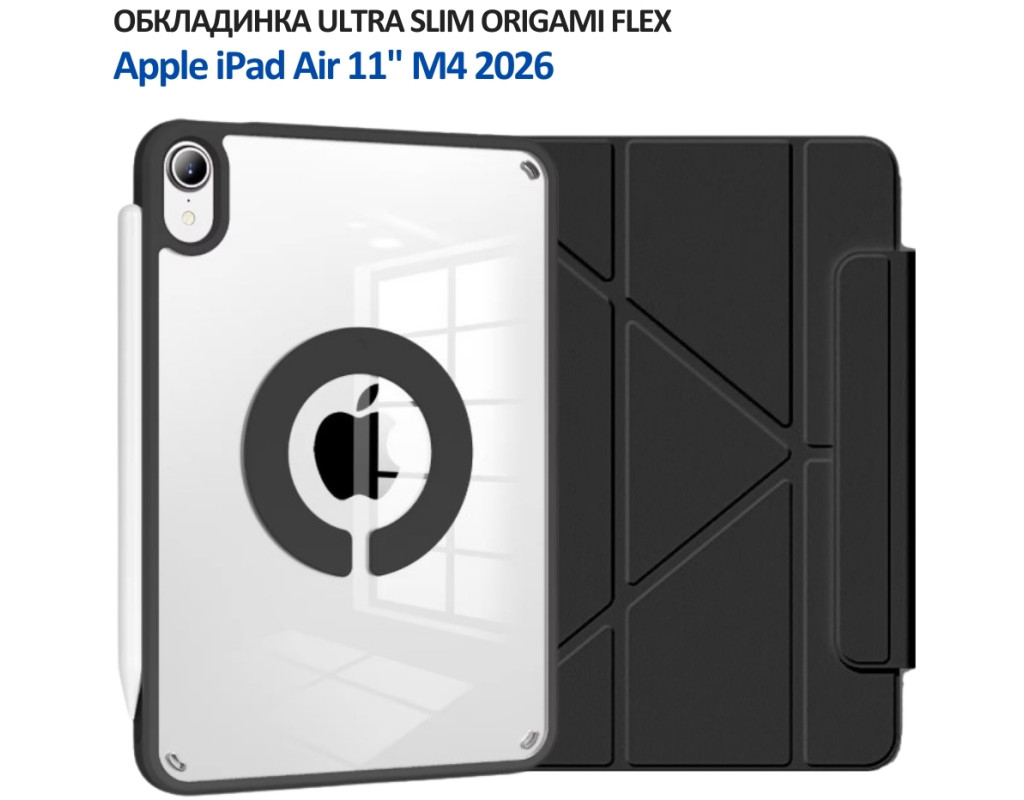 | "Обкладинка Ultra Slim Origami Flex BeCover Стильна та функціональна обкладинка Ultra Slim Origami Flex BeCover забезпечить надійний захист Вашого планшета та зручність користування ним. - Високоякісні матеріали – виготовлена з міцної штучної шкіри, що гарантує довговічність користування. - Мультифункціональна підставка – унікальна конструкція дозволяє складати обкладинку в різні положення для комфортного перегляду відео, читання або роботи. - Магнітна фіксація – вбудовані магніти надійно утримують обкладинку, забезпечуючи фіксацію у вибраному положенні. - Стильний дизайн – сучасний мінімалістичний вигляд додає елегантності та гармонійно доповнює Ваш планшет. - Повний доступ до функцій – точні вирізи забезпечують легкий доступ до всіх кнопок, портів та камери. Ідеальний вибір для тих, хто цінує стиль, функціональність та надійний захист!" |