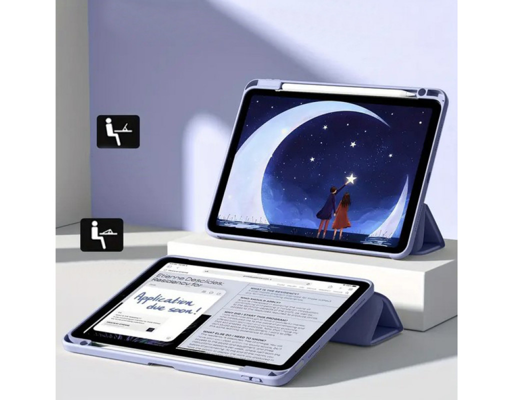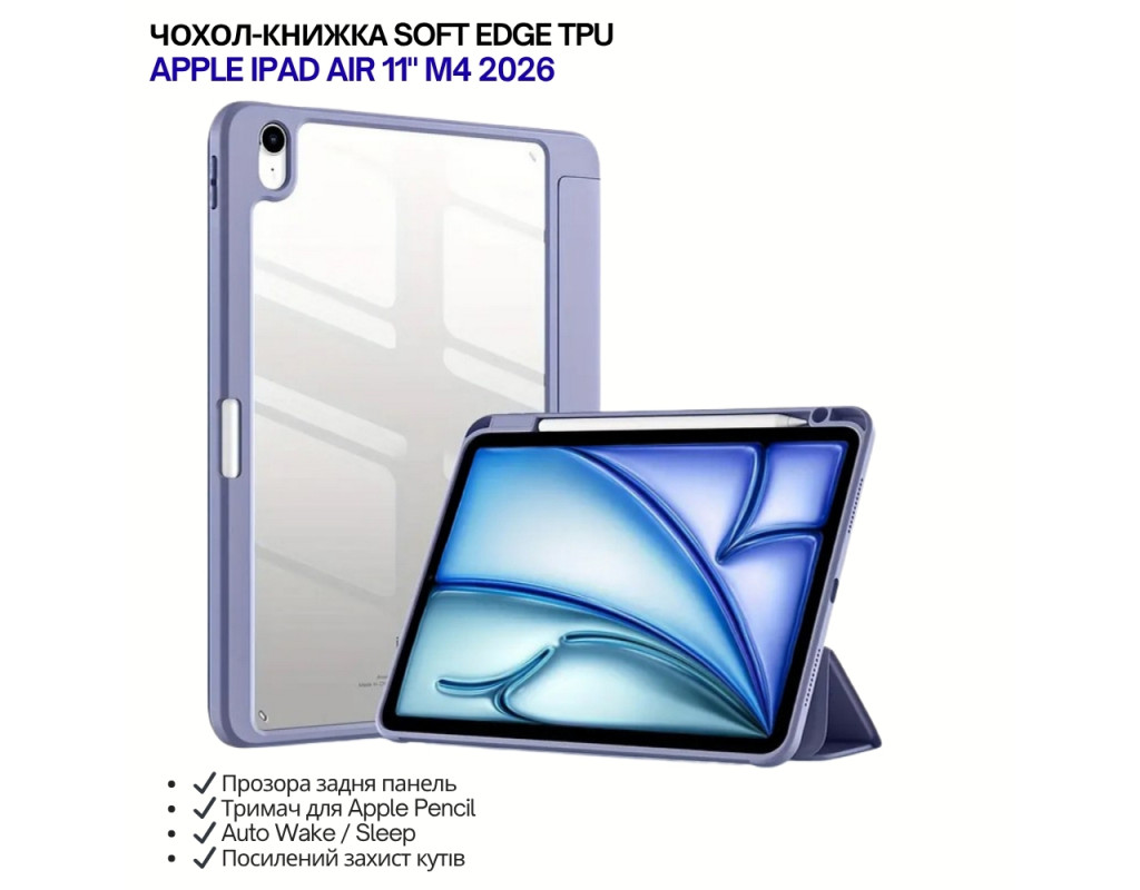 | "Чохол-книжка Soft Edge TPU BeCover з кріпленням Apple Pencil для Apple iPad Air 11" M4 2026 Чохол-книжка Soft Edge TPU BeCover — це продумане поєднання захисту, функціональності та сучасного дизайну для вашого iPad. Модель створена з урахуванням щоденного використання: для роботи, навчання та розваг. Основа чохла виконана з гнучкого TPU з посиленими краями, що ефективно амортизує удари та захищає планшет при падіннях. Напівпрозора задня панель зберігає оригінальний вигляд пристрою та не жовтіє з часом. Передня кришка підтримує функцію автоматичного пробудження та переходу в режим сну (Auto Wake/Sleep), а також легко трансформується у підставку з двома зручними кутами нахилу — для перегляду відео або роботи. Окрема увага приділена Apple Pencil: чохол оснащений вбудованим тримачем із фіксацією, що забезпечує зручне та безпечне зберігання стилуса. Точні вирізи гарантують повний доступ до всіх кнопок, динаміків і роз’ємів без необхідності знімати чохол. ⭐ Основні переваги: Посилений TPU-корпус із захистом кутів Напівпрозора задня панель (anti-yellow) Функція Auto Wake / Sleep Підставка з двома кутами нахилу Тримач для Apple Pencil Повний доступ до портів і кнопок" |