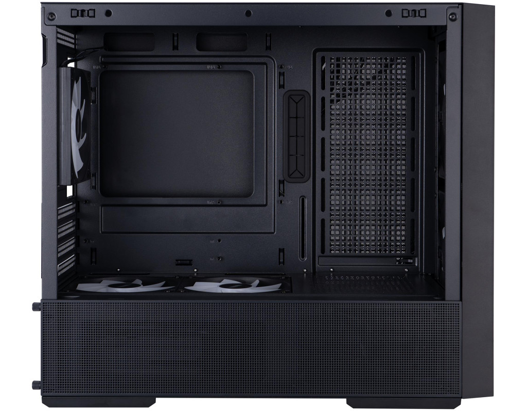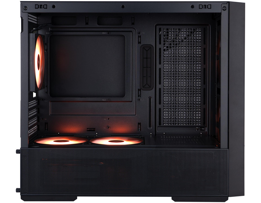 Максимальное охлаждение: корпус поддерживает установку до одиннадцати вентиляторов диаметром 120 мм, что позволяет организовать сквозной воздушный поток для охлаждения горячих компонентов. Поддержка жидкостного охлаждения: предусмотрена возможность установки систем жидкостного охлаждения с радиатором до 360 мм на верхней панели, что идеально подходит для топовых процессоров. Пространство для мощных видеокарт: несмотря на компактный формат M-ATX, корпус вмещает видеокарты длиной до 390 мм, позволяя установить флагманские графические решения. Уникальное расположение блока питания: блок питания находится в нижне-передней части. Это не только оптимизирует внутреннее пространство, но и улучшает забор воздуха снизу, способствуя более эффективному охлаждению видеокарты. Стильный дизайн: боковая панель из закаленного стекла открывает великолепный вид на ваши компоненты, а специальные углубления для нижних вентиляторов позволяют установить их заподлицо с корпусом для аккуратного вида. |