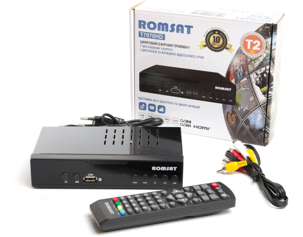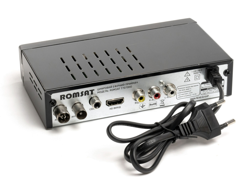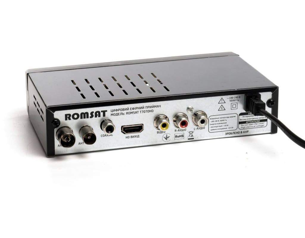 | ТВ тюнер Romsat DVB-T2, металл (T7070HD) - идеальный выбор для тех, кто ценит высокое качество изображения и широкий доступ к цифровому телевидению. Этот приемник поддерживает разрешение до 1920 x 1080 пикселей, обеспечивая четкое и насыщенное изображение. Благодаря совместимости с форматами DVB-T, DVB-T2 и DVB-C, вы получите максимальную совместимость с современными телевизионными стандартами. Особенностью модели T7070HD является поддержка HDMI и RCA интерфейсов, что позволяет легко подключать тюнер к широкому спектру устройств. Стереозвук обеспечит качественное аудио при просмотре любимых программ. С дополнительными функциями, как EPG, телетекст и родительский контроль, этот тюнер становится еще удобнее для использования в семейном кругу. Ключевые функции, такие как USB PVR и Timeshift, позволяют записывать и просматривать контент в любое удобное время. Благодаря металлическому корпусу размером 168 х 95 х 38 мм, T7070HD меньше нагревается, что продлевает срок его службы. Встроенный USB-порт упрощает использование внешних накопителей для просмотра видео, фотографий и музыкальных файлов, даря вам полный контроль над вашим медиа-опытом. |