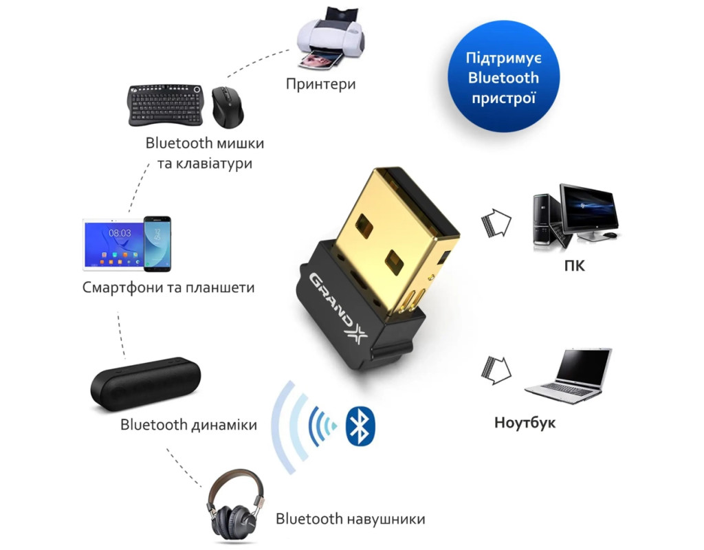 Новый адаптер Grand-X BT50G с чипом RTL8761B от компании Realtek добавляет Bluetooth 5.4 порт к любому компьютеру или ноутбуку. Позволяет подключать: смартфон, планшет, ноутбук, аудио гарнитуру, геймпад, и другие устройства с поддержкой Bluetooth. В адаптере реализована поддержка двойного режима (возможность одновременного подключения двух устройств, например гарнитура и принтер) и повышение скорость передачи данных до 3 Мбит (при условии поддержки сопрягаемого устройства). Полностью совместим с Bluetooth версий 3.0 и 4.0