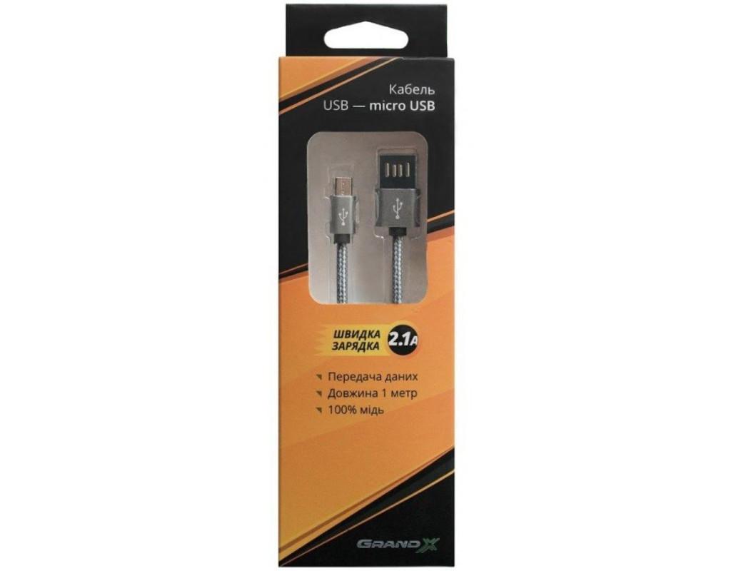 Кабель повышенной прочности c симметричным USB разъемом Grand-X USB-micro USB FM02 разработан специально для использования с током зарядки до 2,1А что позволяет быстро заряжать устройства, а также полноценно проводить обмен данными. Особенности: - Быстрая зарядка. Использование 100% медного провода, никелированных контактов, строгие тесты качества гарантируют отсутствие "проседания" тока на кабеле и максимально быструю зарядку - Защитная оплетка из прочной нейлоновой нити делает кабель существенно более защищенным от повреждений. Нет ничего вечного, но шансов, что он перетрется или его перекусит домашний питомец, гораздо меньше, чем у обычного кабеля. - Симметричный USB разъем. Теперь можно не заботиться правильно Вы вставляете USB разъем или нет. Теперь любое положение - правильное.