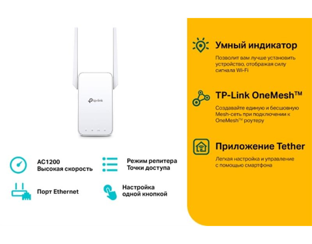 Точка доступа TP-Link RE315 (AC1200, 1xFE, Mesh, 2 внешние антенны)