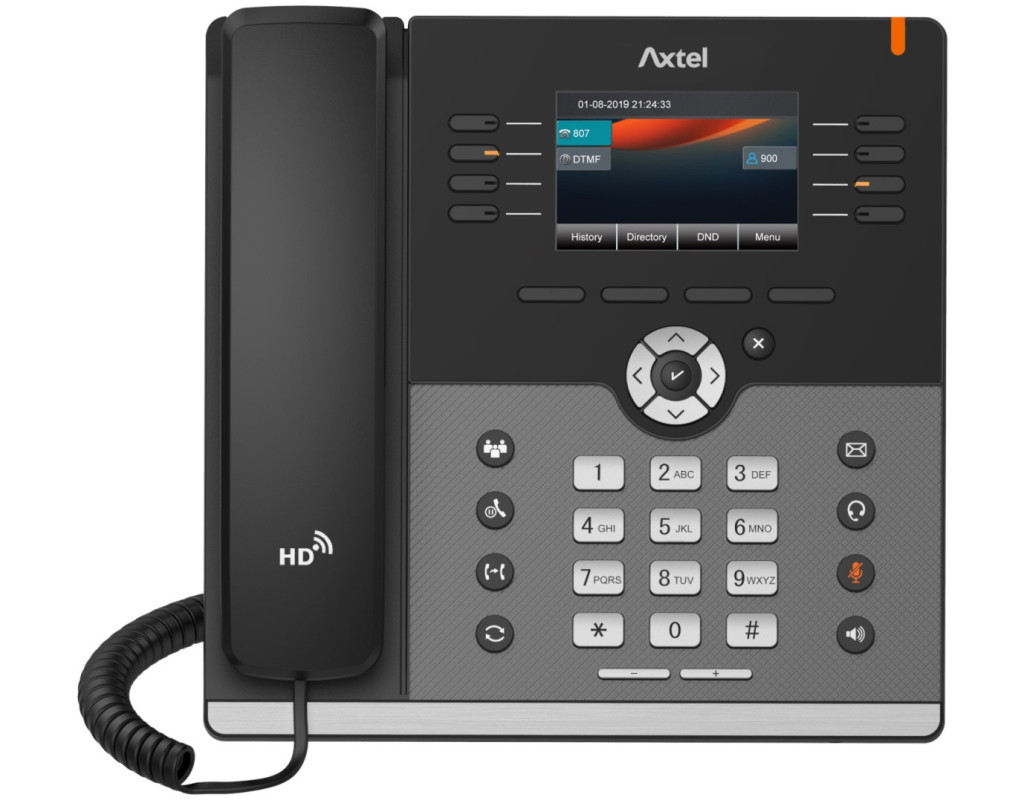 Предназначен для фирм любых размеров. Оснащен 12 учетными записями SIP, 5-сторонним мостом для аудиоконференций и может быть интегрирован с инновационной системой EHS. Расширенная функциональность линии AX-500W дополняется элегантным дизайном, который удовлетворит самых требовательных пользователей. |