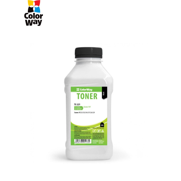 Тонер Canon MF221/212 (120g) ColorWay (TC-221) Специальный тонер для заправки картриджей лазерных монохромных печатающих устройств. Благодаря фирменному полупрозрачному флакону из полипропилена тонеры ColorWay минимально подвержены воздействию окружающей среды. Полную герметичность флакона обеспечивают крышка с закруткой и дополнительная чека, устанавливаемая с помощью индукционной запайки. Качество тонера гарантируется производителем в течение гарантийного срока хранения. Зарекомендовавший себя тонер Canon MF221/212 (120g) ColorWay отличается прекрасным качеством, благодаря усовершенствованной технологии производства, а также удобной упаковкой и интересным дизайном. Такие нововведения разработали специалисты компании специально для отечественных потребителей. Ассортимент компании ColorWay подходит ко многим разновидностям картриджей для популярных моделей принтеров и копиров. |