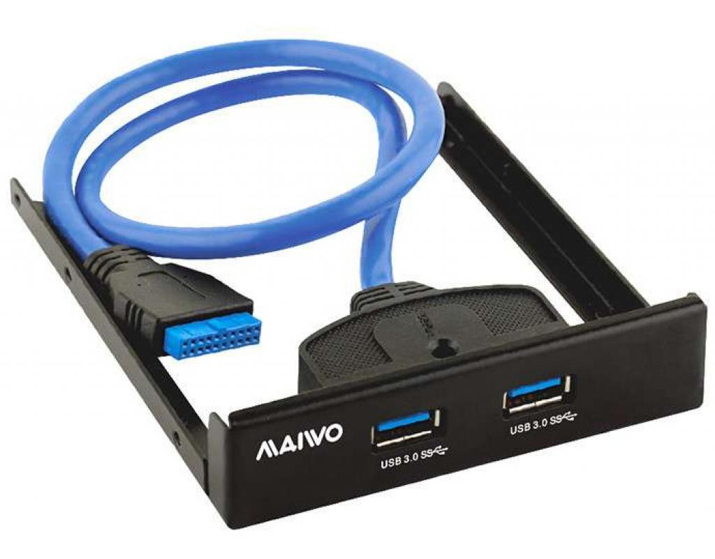 USB Maiwo KC010 выводит два порта USB 3.0 на переднюю панель компьютера, 19-pin USB3.0 кабель подсоединяется к материнской плате, совместим с USB 2.0.