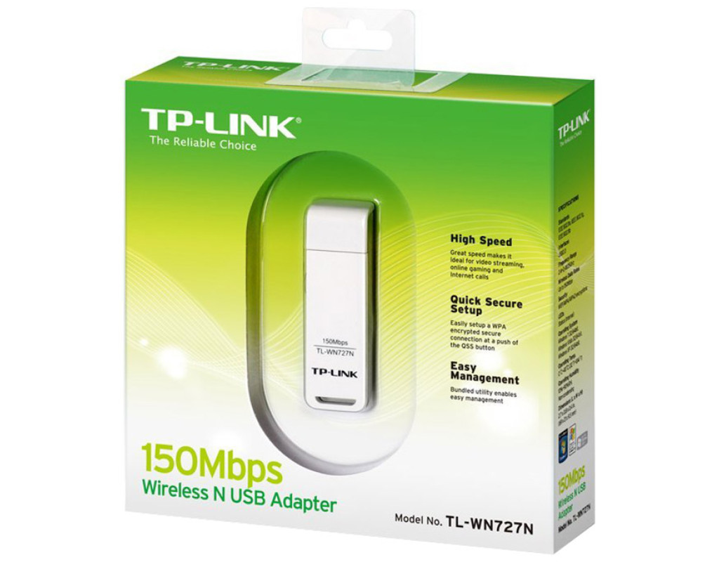 Предназначение устройства Беспроводной сетевой USB-адаптер серии N TL-WN727N позволит вам подсоединить настольный компьютер или ноутбук к беспроводной сети и воспользоваться доступом в Интернет по высокоскоростному подключению. Сетевой адаптер поддерживает стандарт IEEE 802.11n со скоростью передачи данных по беспроводному подключению до 150 Мбит/с, идеальной для онлайн-игр и потокового видео.
