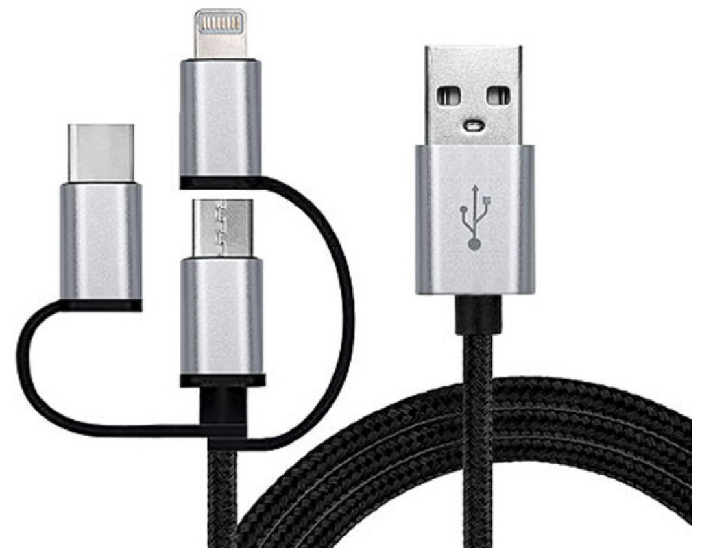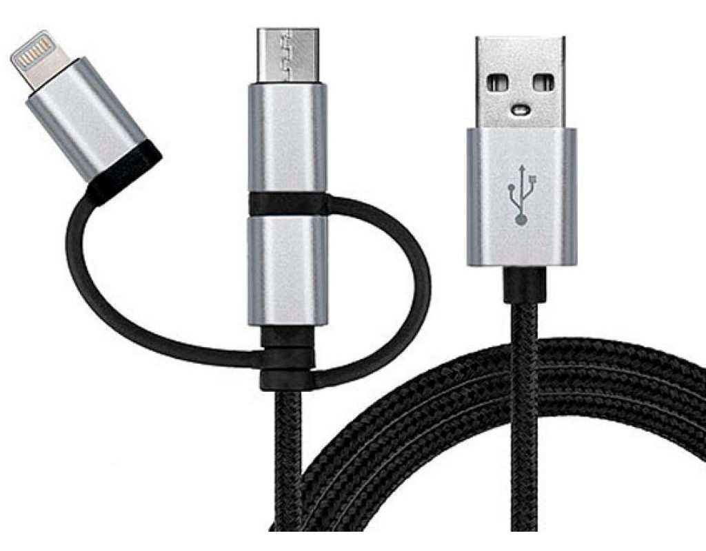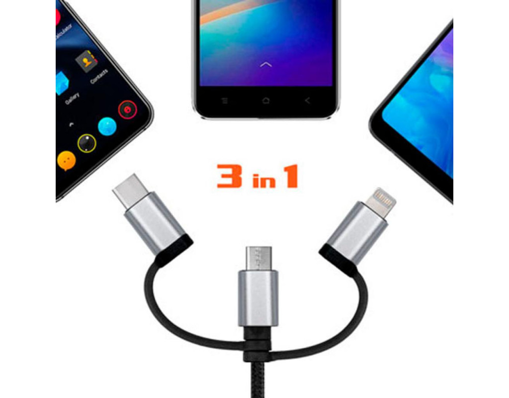 Тип - кабель, Тип коннектора 1 - USB 2.0, Тип коннектора 2 - micro USB, Lightning, USB Type-C, длина - 1 м, Цвет - черный