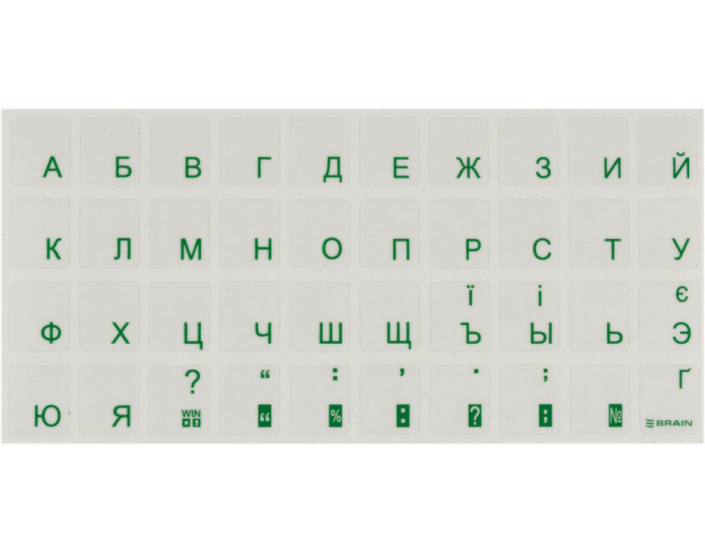 | Наклейки на клавиатуру AIN green изготовленны из высококачественного материала и покрыты специальным тонким защитным слоем, который предотвращает стирание букв и продлевает срок службы наклейки. Наклейки на клавиатуру AIN green хорошо крепятся к поверхности клавиатуры. При необходимости, наклейки на клавиатуру легко удаляются с поверхности и не оставляют следов. Не боятся влажной уборки. Раскладка русско-украинская. Наклейки на клавиатуру AIN green изготовленны на прозрачной основе, цвет – зеленый. |