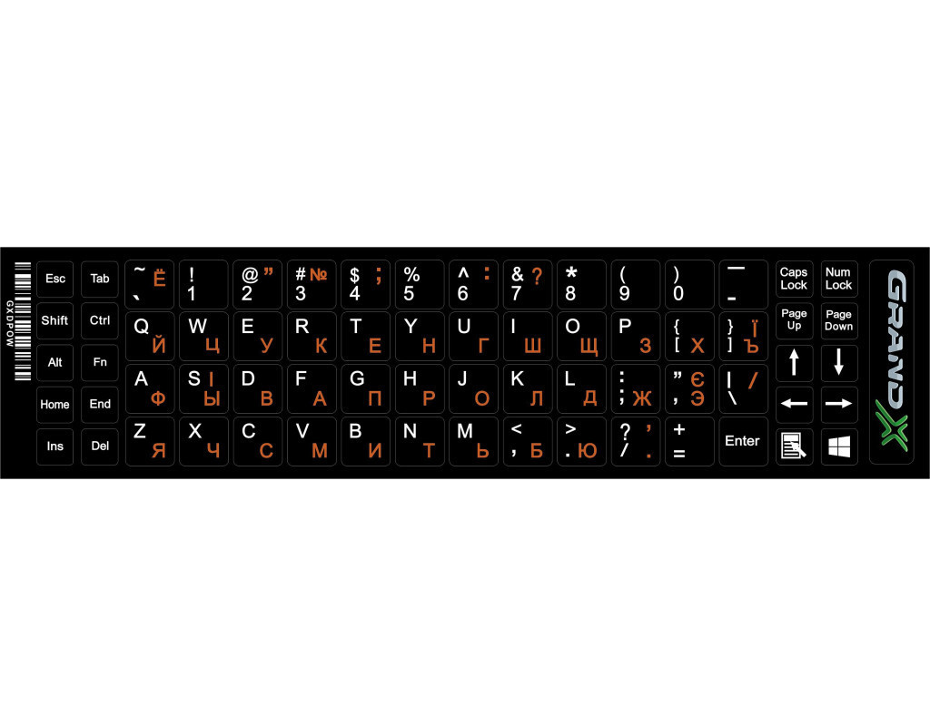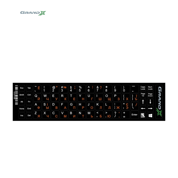 Наклейка на клавиатуру Grand-X 68 keys Cyrillic orange, Latin white (GXDPOW)