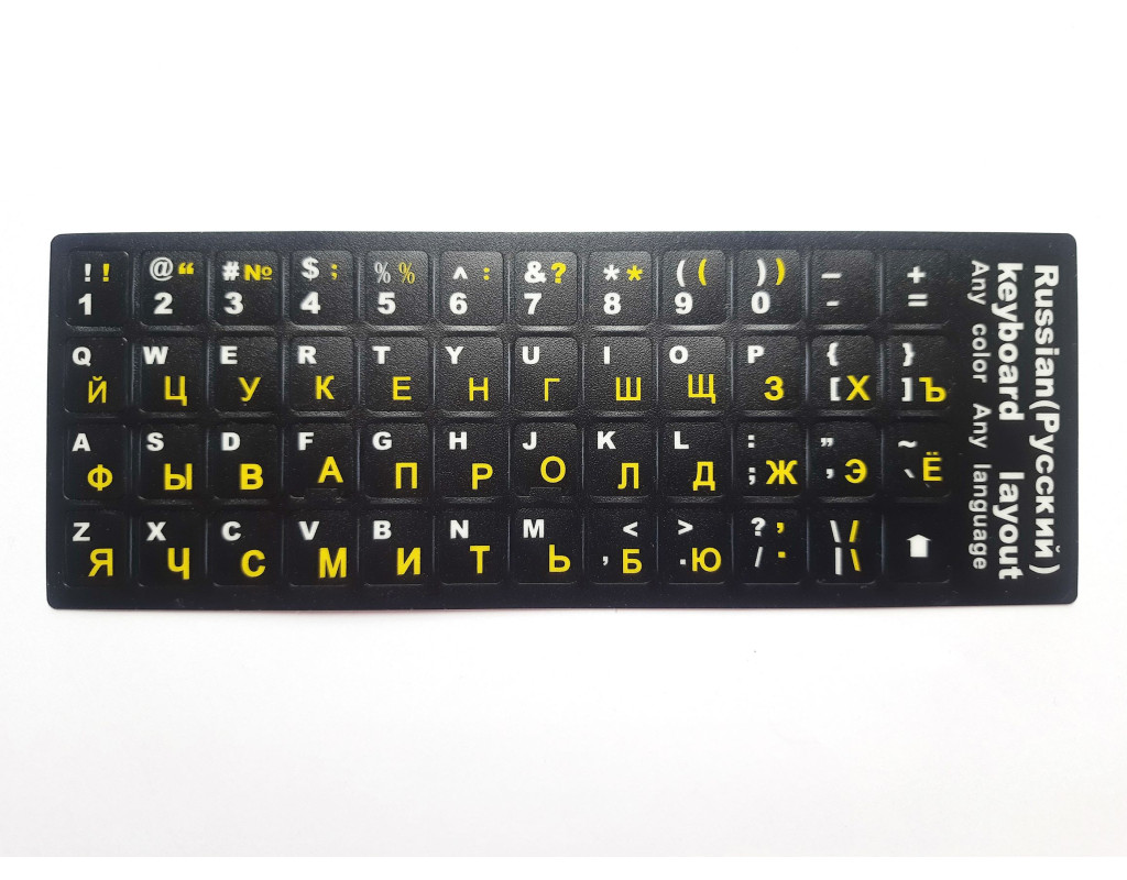 Данный комплект наклеек позволит "русифицировать" клавиатуру без кириллицы. Или восстановить надписи символов, если оные стерлись со временем. |